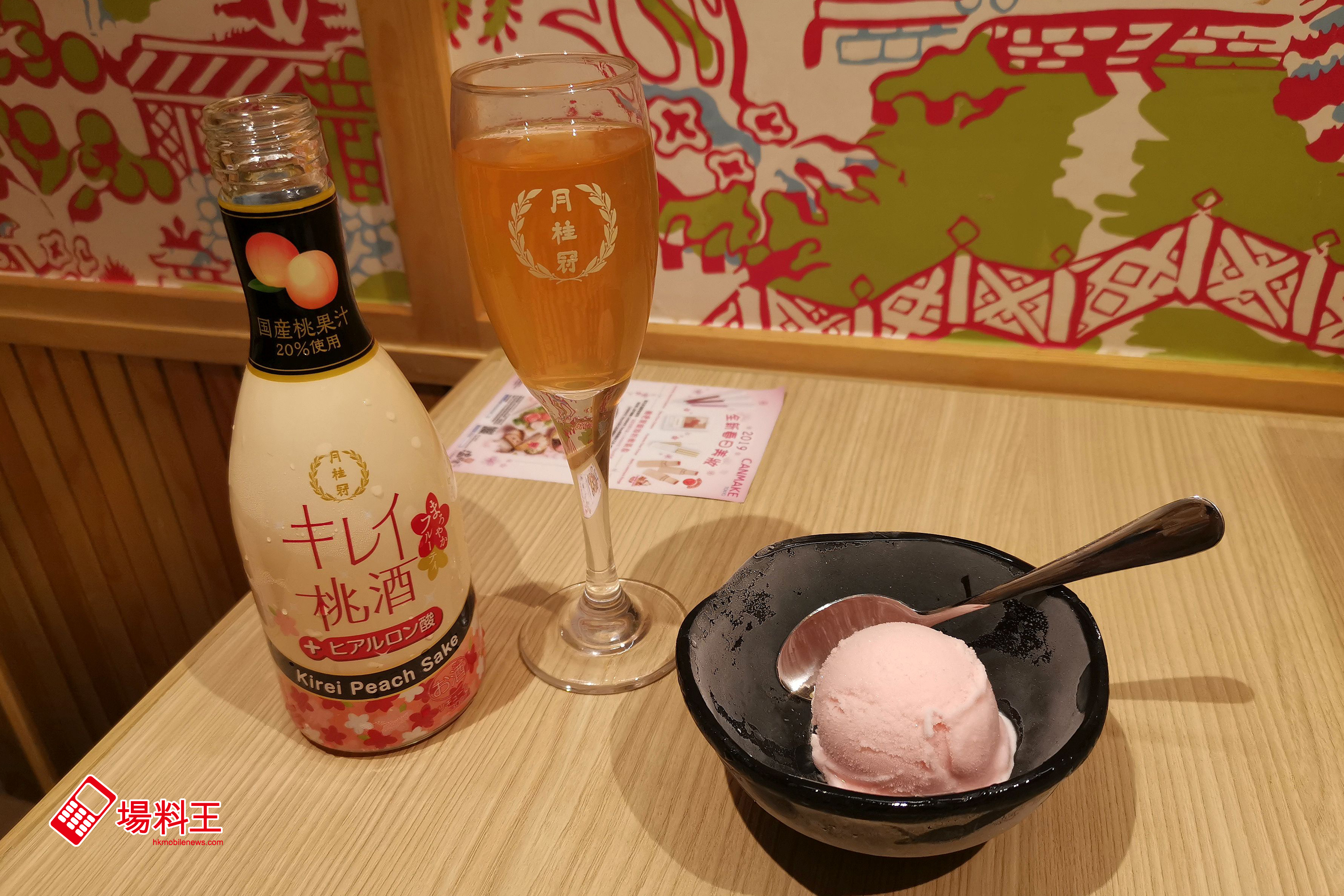 一般的定食多有包含飲品、甜品,但想不到的是「櫻花鍋」定食提供的飲品是整支 300ml 的月桂冠的美人桃酒 (單點價:$78),由 20% 日本水蜜桃果汁添加透明質酸,有助潤澤肌膚;而飯後甜品則是日本進口的櫻花味雪糕 (單點價:$22)。