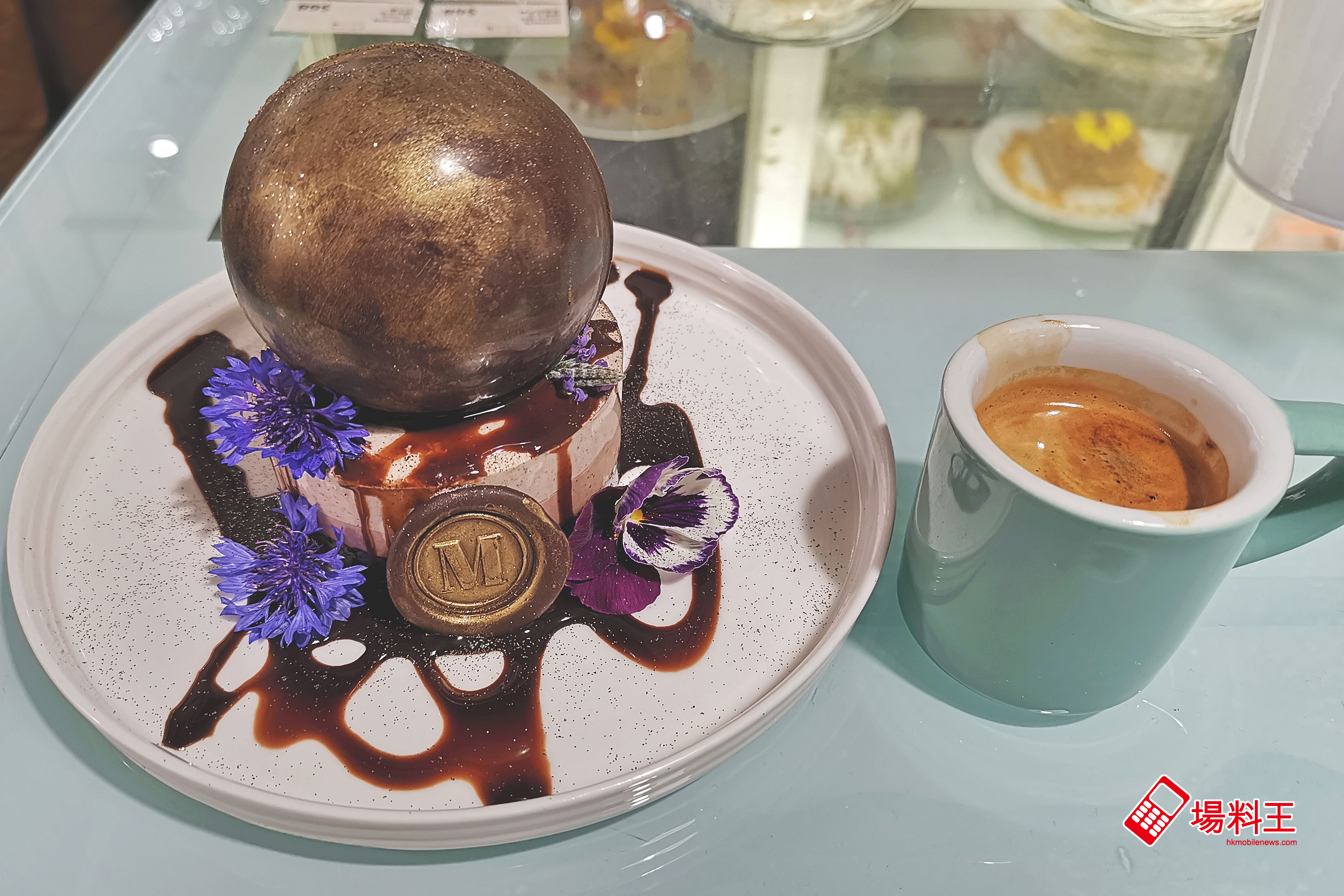 M Patisserie 蛋糕的造型都很漂亮,筆者認為最吸引的要算「苦與樂」($88),因當中用上咖啡、朱古力、超濃朱古力共三層的摩絲,配上朱古力蛋糕底外,再附上濃縮咖啡,讓食客真有如要在苦有尋樂一樣,十分過癮!