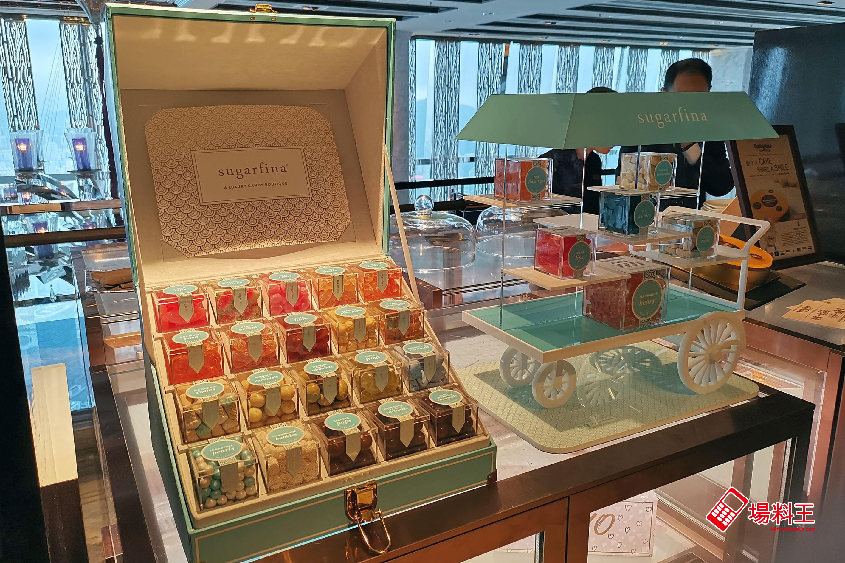 在還沒進入 Café 103,於門口位置便可看到 Sugarfina 展示的多款糖果,以及小型的多層糖果車,原來那是今次為「Sugarfina 甜蜜春日下午茶」而設計,並用作擺放下午茶餐點之用,造型十分可愛。