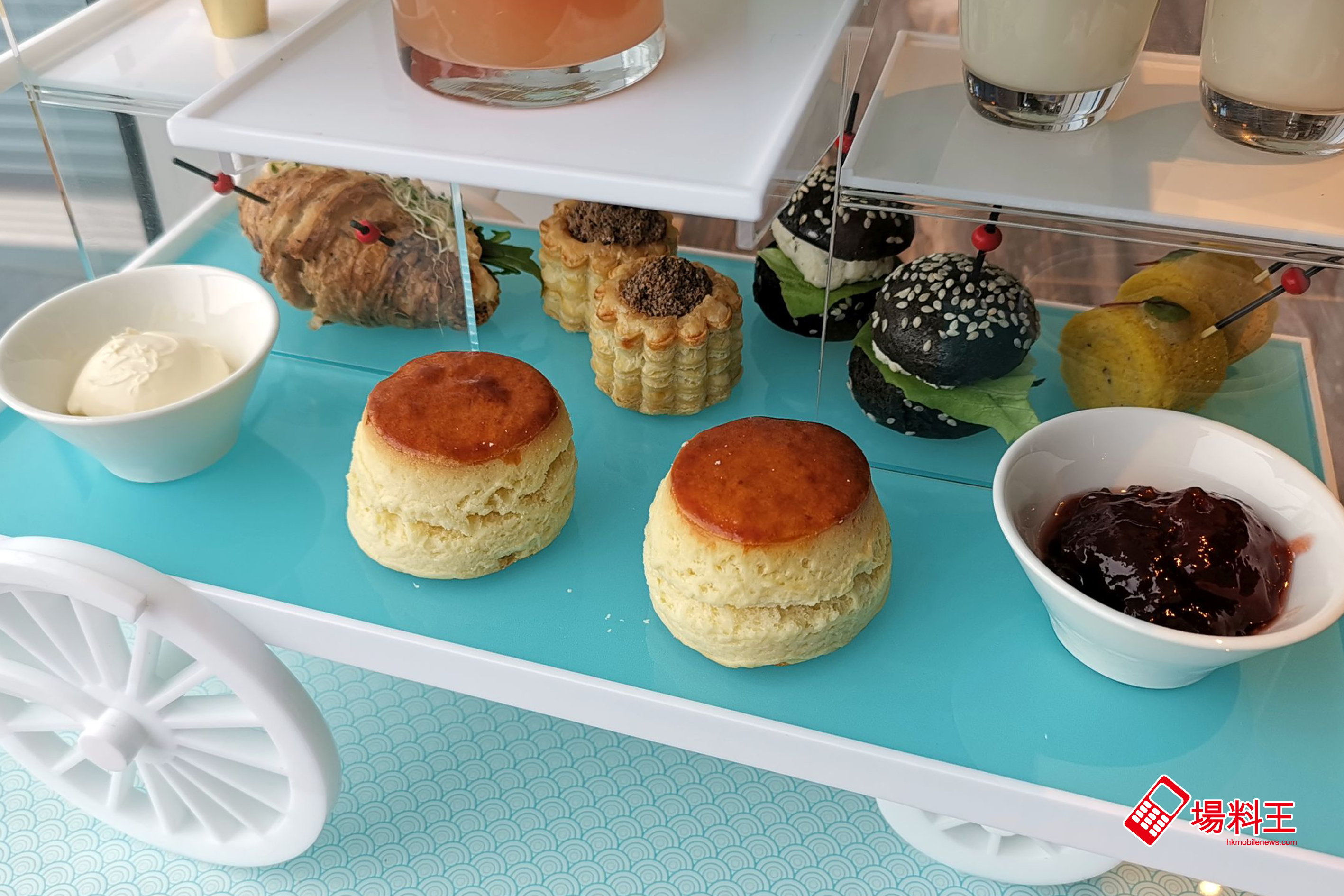 雖然「鬆餅配奶油忌廉及果醬」的外形不算突出的,但鬆餅口感軟綿,配合帶酸的士多啤梨果醬更是令人開胃。