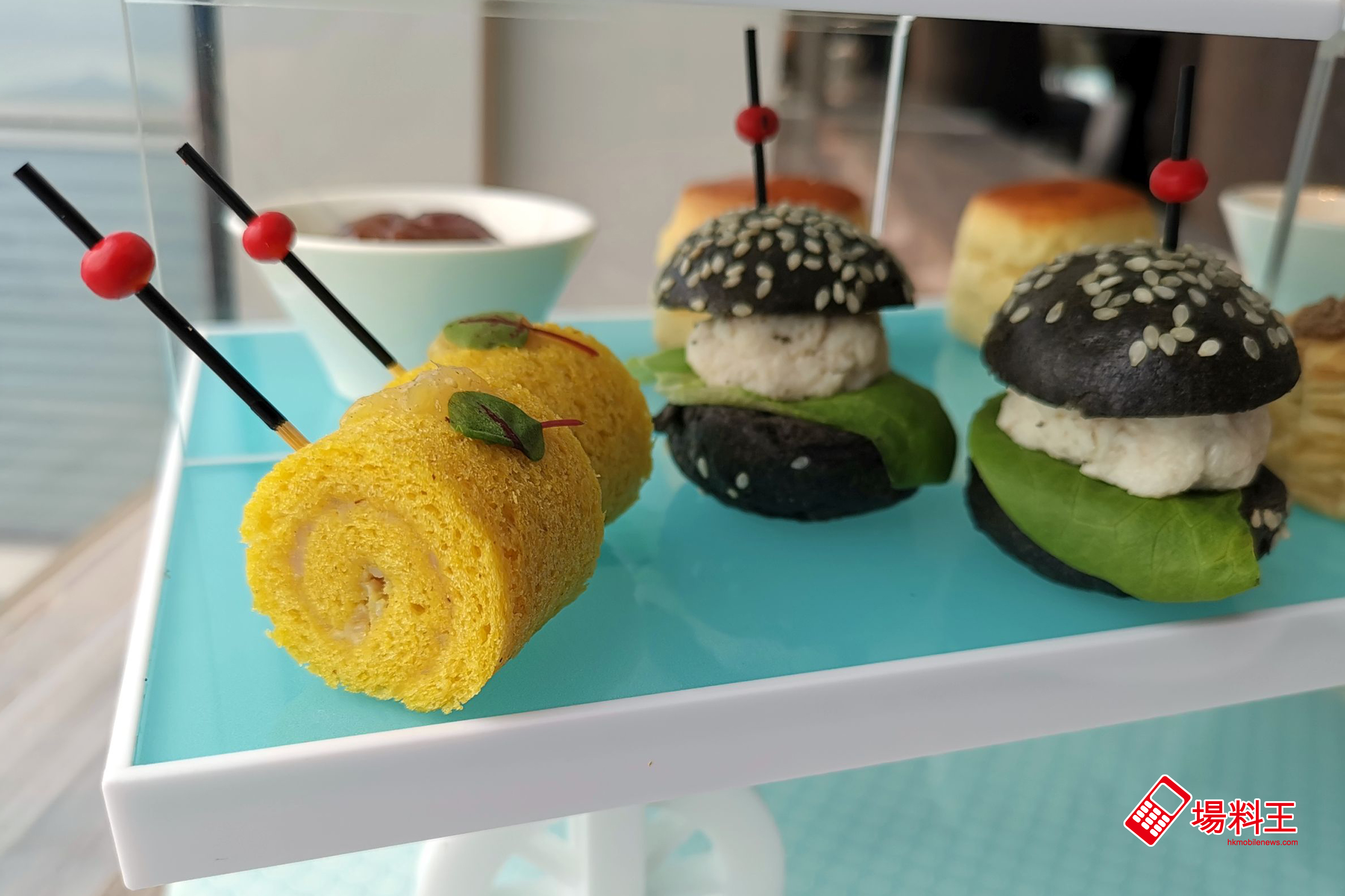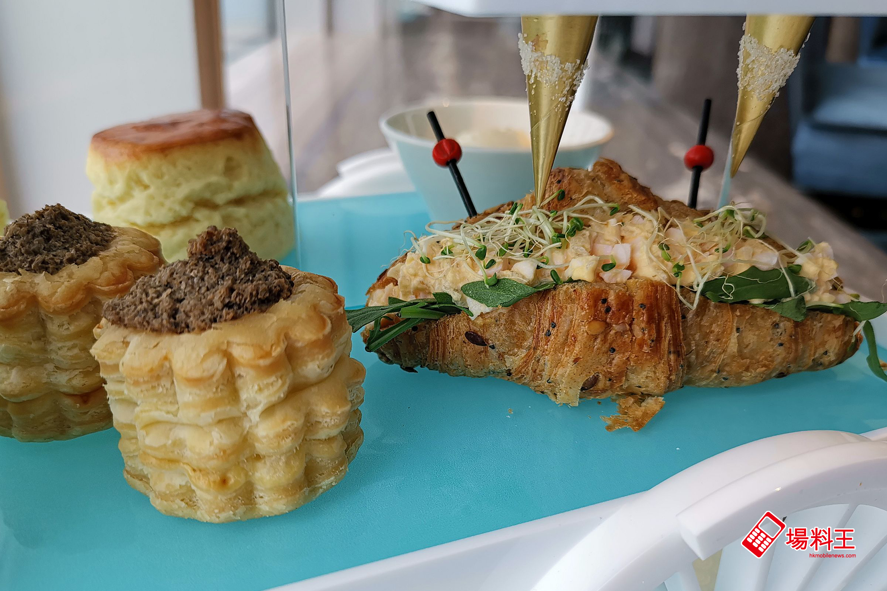 最後,甜品之外當然少不了下午茶不能或缺的鹹點。「烤蘑菇配黑松露洋蔥餡餅」(下因左) 採用小巧別緻的法式酥盒,內裡的雜菌醬裡更加入了黑松露醬,每一口也散發出香馥誘人的氣息;而「有機蛋火箭菜沙律配樱花忌廉迷你牛角包」(下圖右) 以鬆脆的牛角包夾著蛋香味濃的沙律同吃,口感頗豐富。