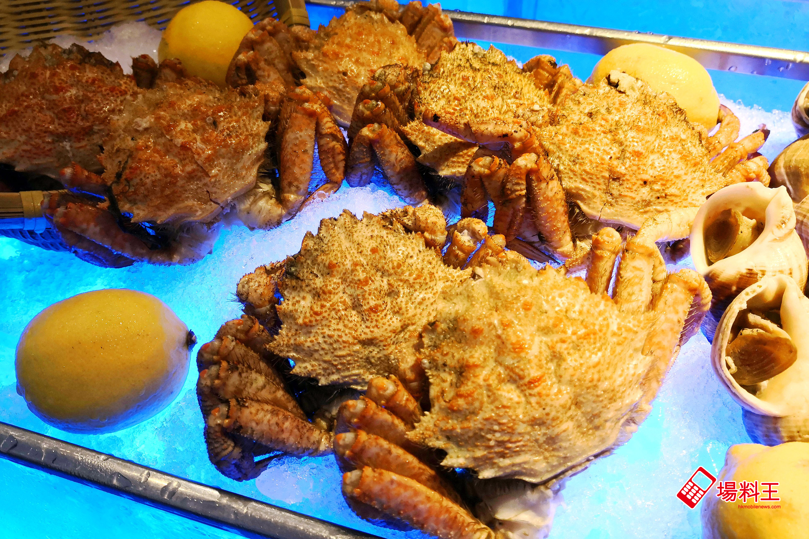 灣景廳的冰鎮海鮮水準一向不錯,有新西蘭生蠔、翡翠螺、鮮蜆、鮮蝦、新西蘭青口等,特別是加拿大雪花蟹腳,肉質不會霉,誇張點說,單是吃蟹腳都可回本!今次竟更有蟹身形同栗子的北海道栗毛蟹,內裡不但有甘香滑溜的蟹膏,蟹肉比其他品種的毛蟹更要鮮甜幼嫩,適逢夏季是栗毛蟹的產卵期,肉質更肥厚,且於一般的自助餐中亦少有毛蟹供選擇,所以更值推介!