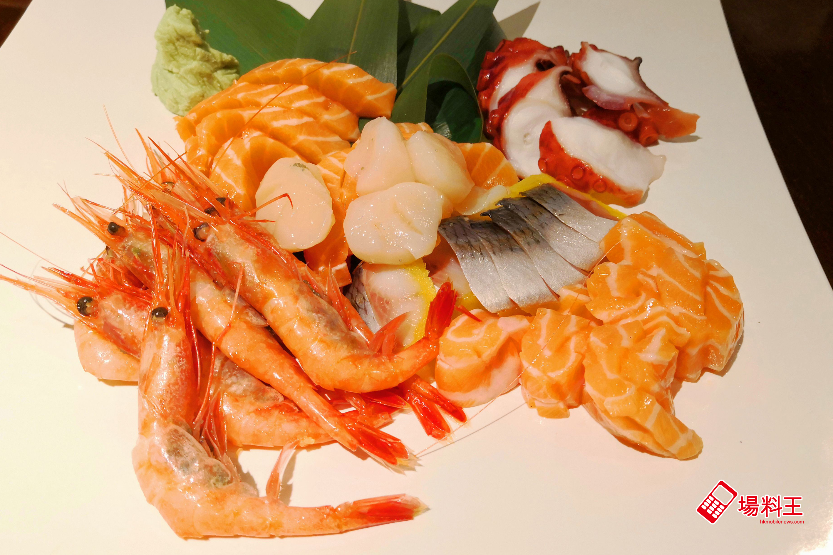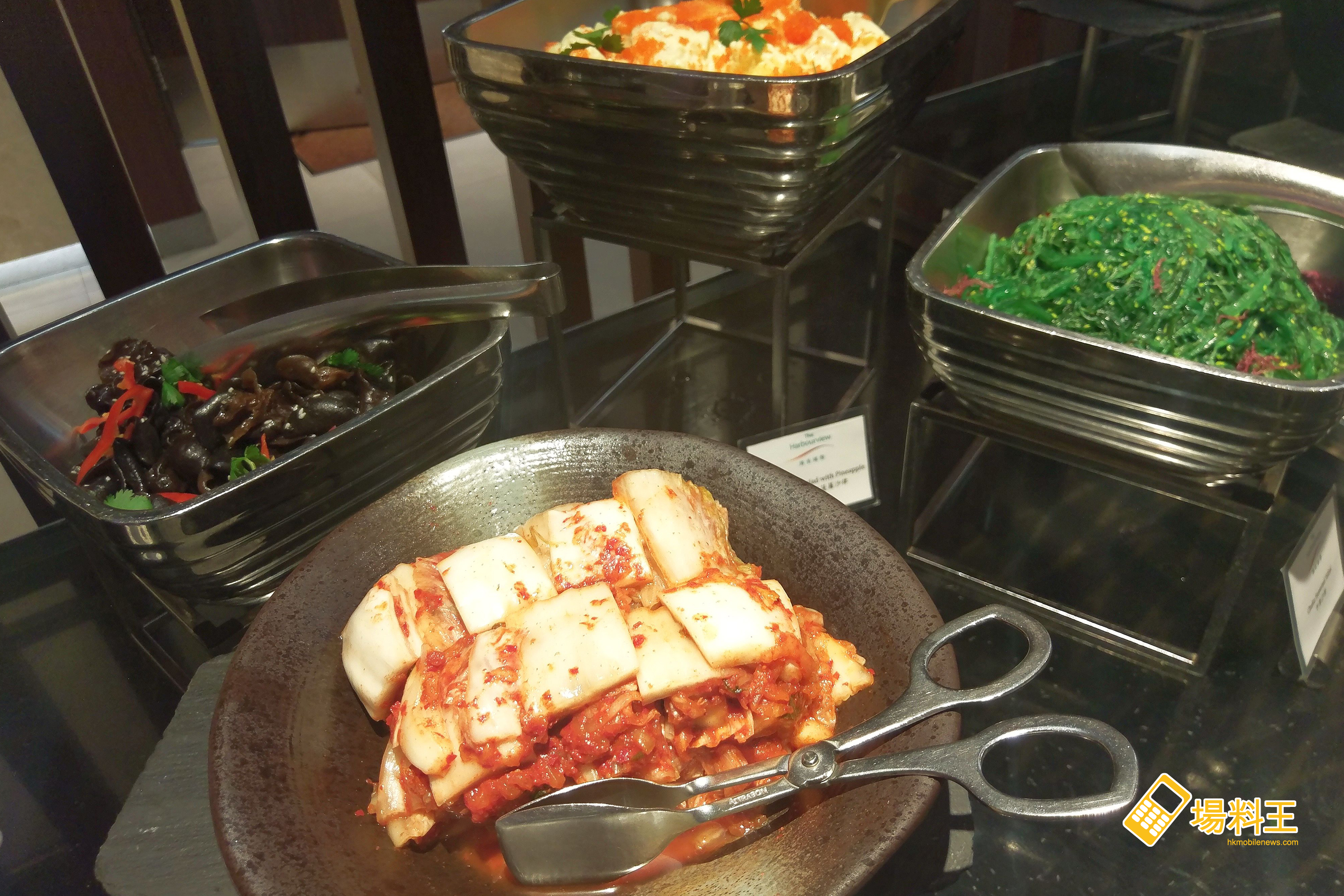 除了上述食物外,自助餐還提供中華沙律、芝麻八爪魚、味付螺肉、日式蟹籽菠蘿薯仔沙律、關東煮、日式炒雜菜,以及香煎韓式牛仔骨、韓式豬頸肉、韓式燉牛肋骨等菜式,包括三文魚、八爪魚、鯛魚、北海道帶子、希靈魚、甜蝦、北寄貝、劍魚及吞拿魚等多達 8 種款式的刺身,亦會因應不同提供日源源奉上。