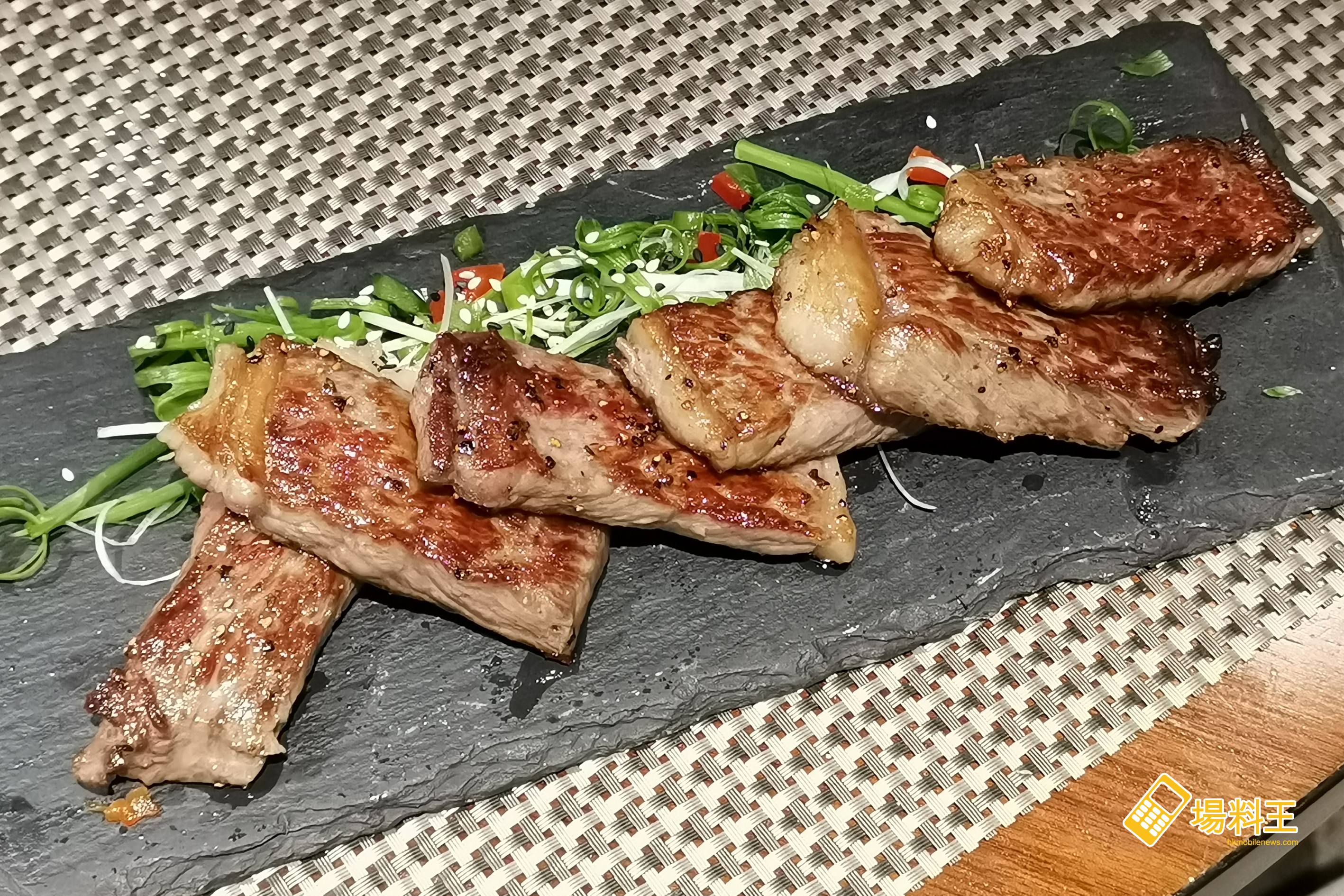 灣景廳的每次都有一客限定加料菜式,今次是每位一客的「香煎日本鹿兒島A4黑毛和牛」。精選鹿兒島肉質與油脂分佈相對平均的 A4 西冷黑毛和牛片,於鐵板爐上慢慢煎至金黃的六、七成熟,不油不膩,入口甘香鬆化,肉香比油脂較重的 A5 和牛更濃厚,口感精緻嫩滑,齒頰留香,確是上品佳餚。