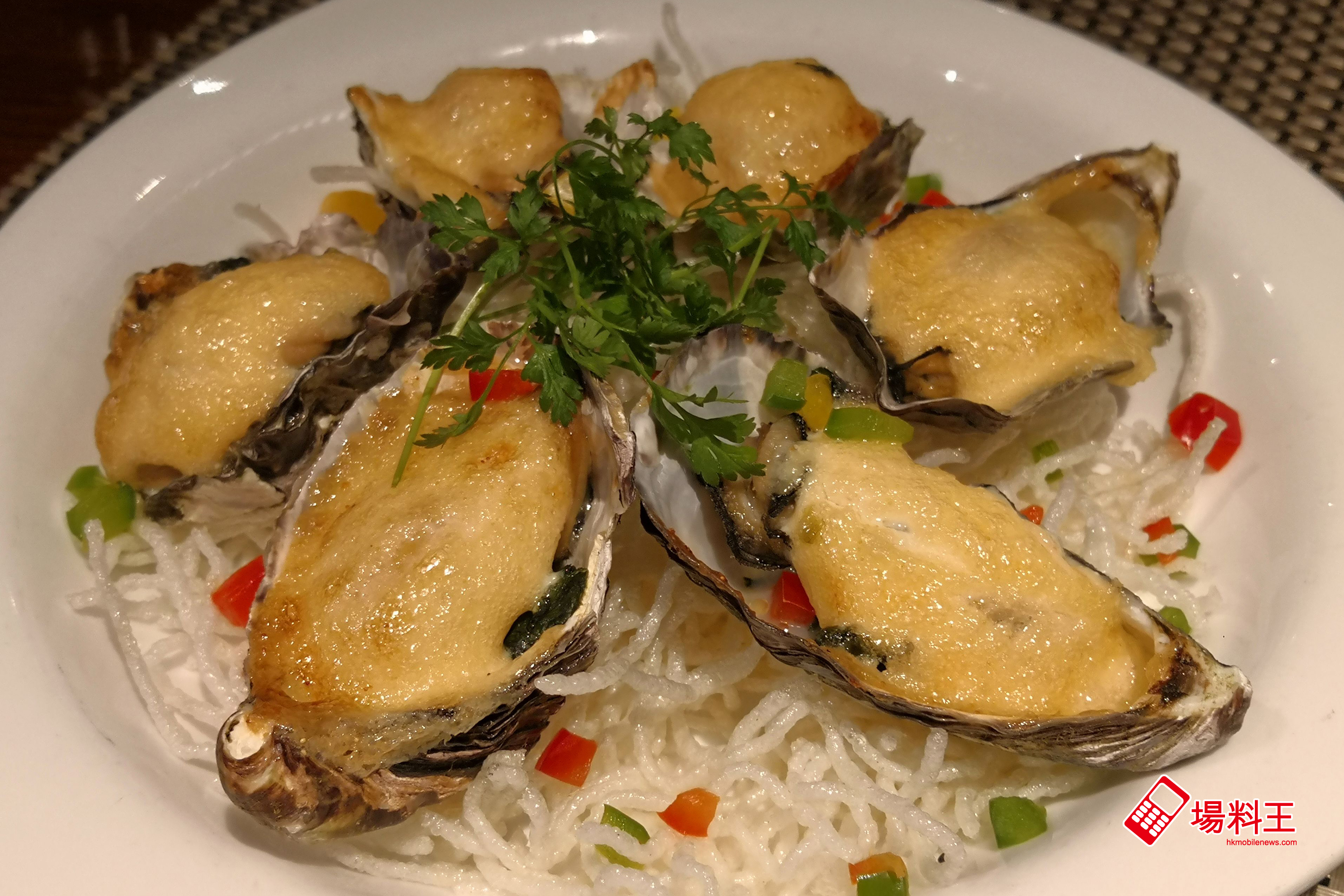 於飽滿的廣島蠔上舖上一層以 Mayonnaise 蛋黃醬混和明太子的醬汁,再利用烤焗鎖住蠔的水份及讓蠔肉吸收明太子的鹹香與蛋黃醬的香甜,令這道「明太子焗廣島蠔」鹹甜有致。