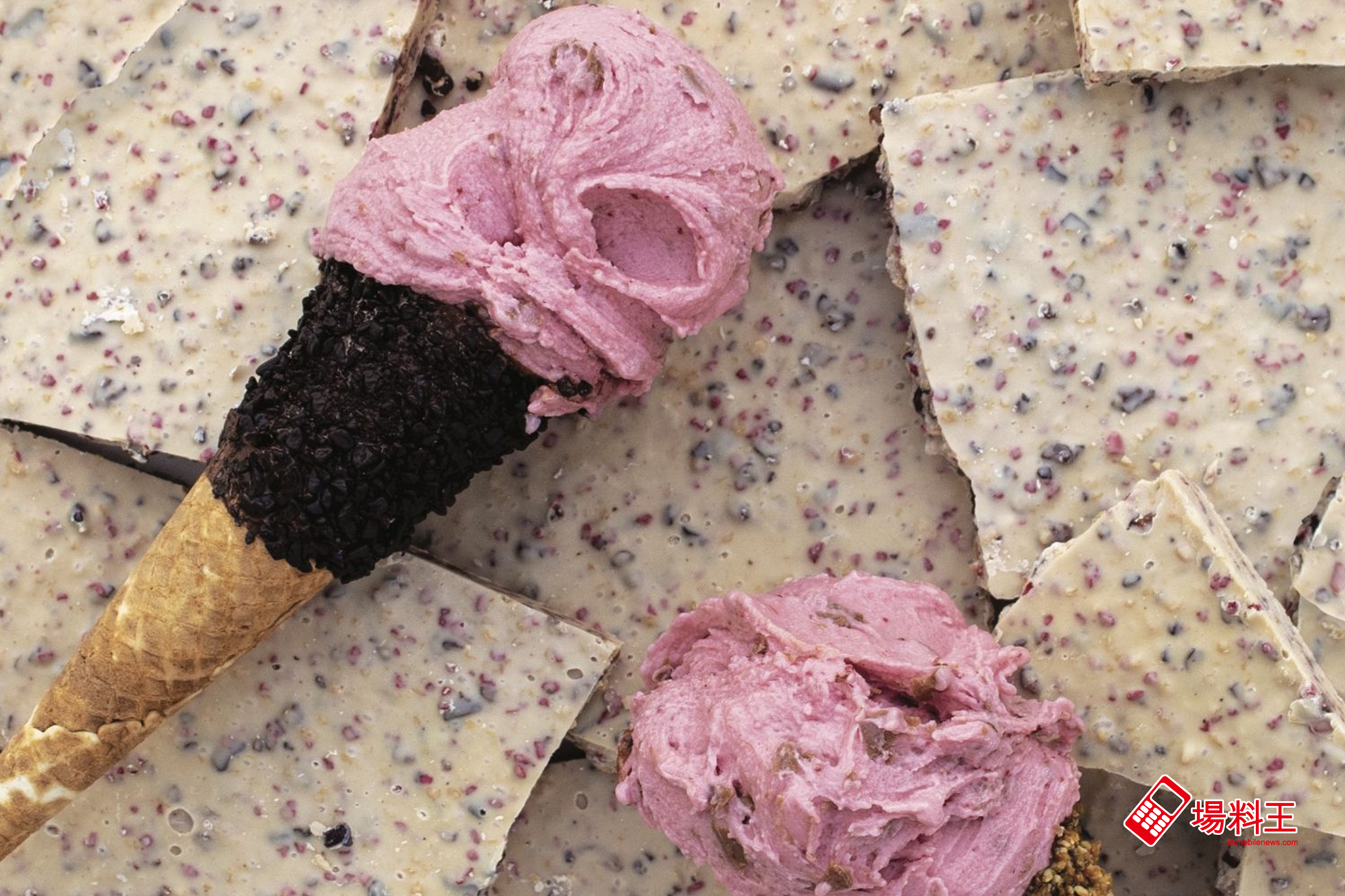 在 5 款新口味中,包括 5 月推出的草莓巧克力脆片意大利雪糕 (上圖) 及 6 月推出的荔枝味道雪葩 (下圖)、特濃黑巧克力-低糖版意大利雪糕。