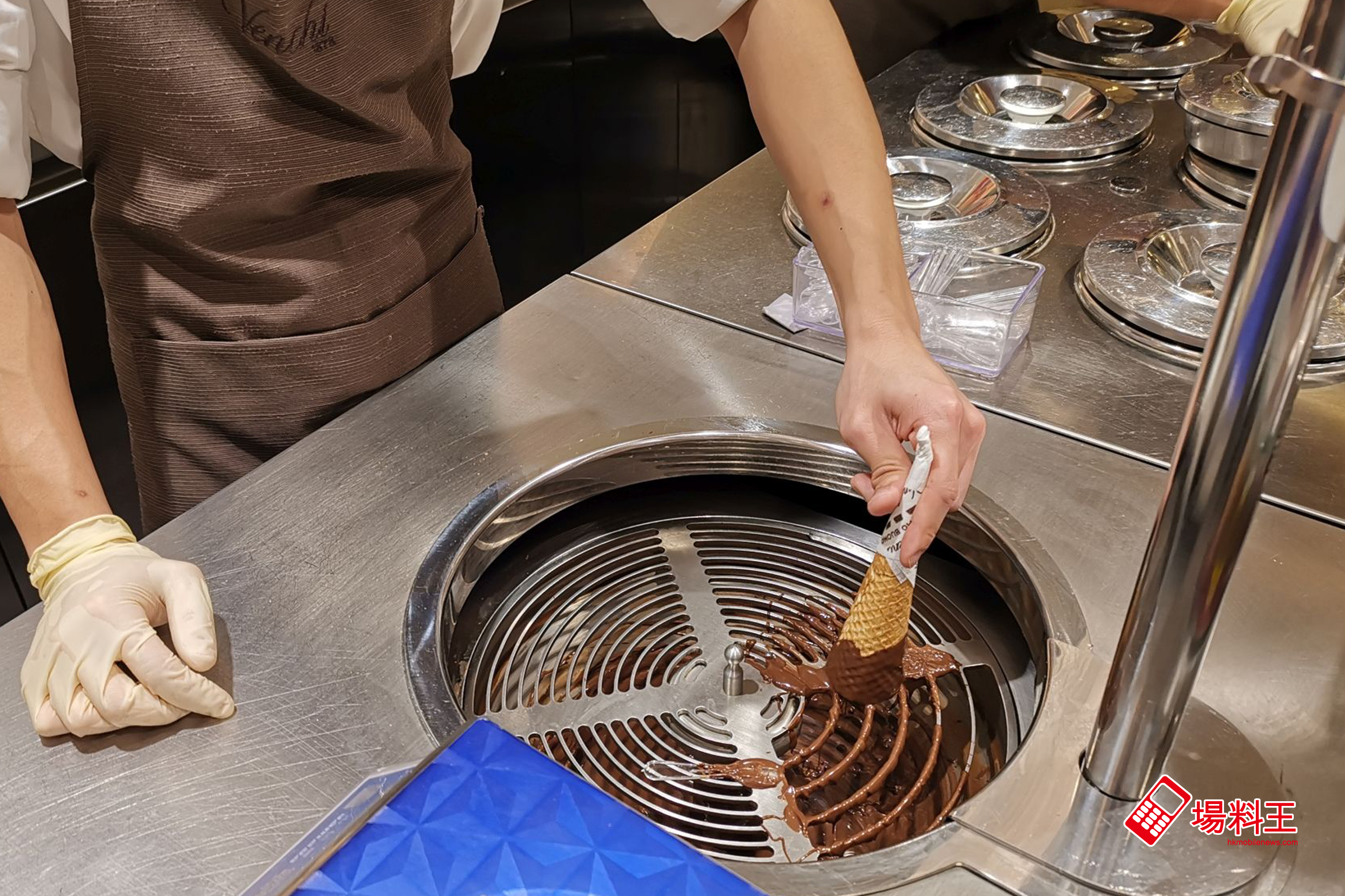 店員弄好脆筒後,盛載雪糕時更會不時拍打雪糕外層,目的就是令其雪糕外層更滑。