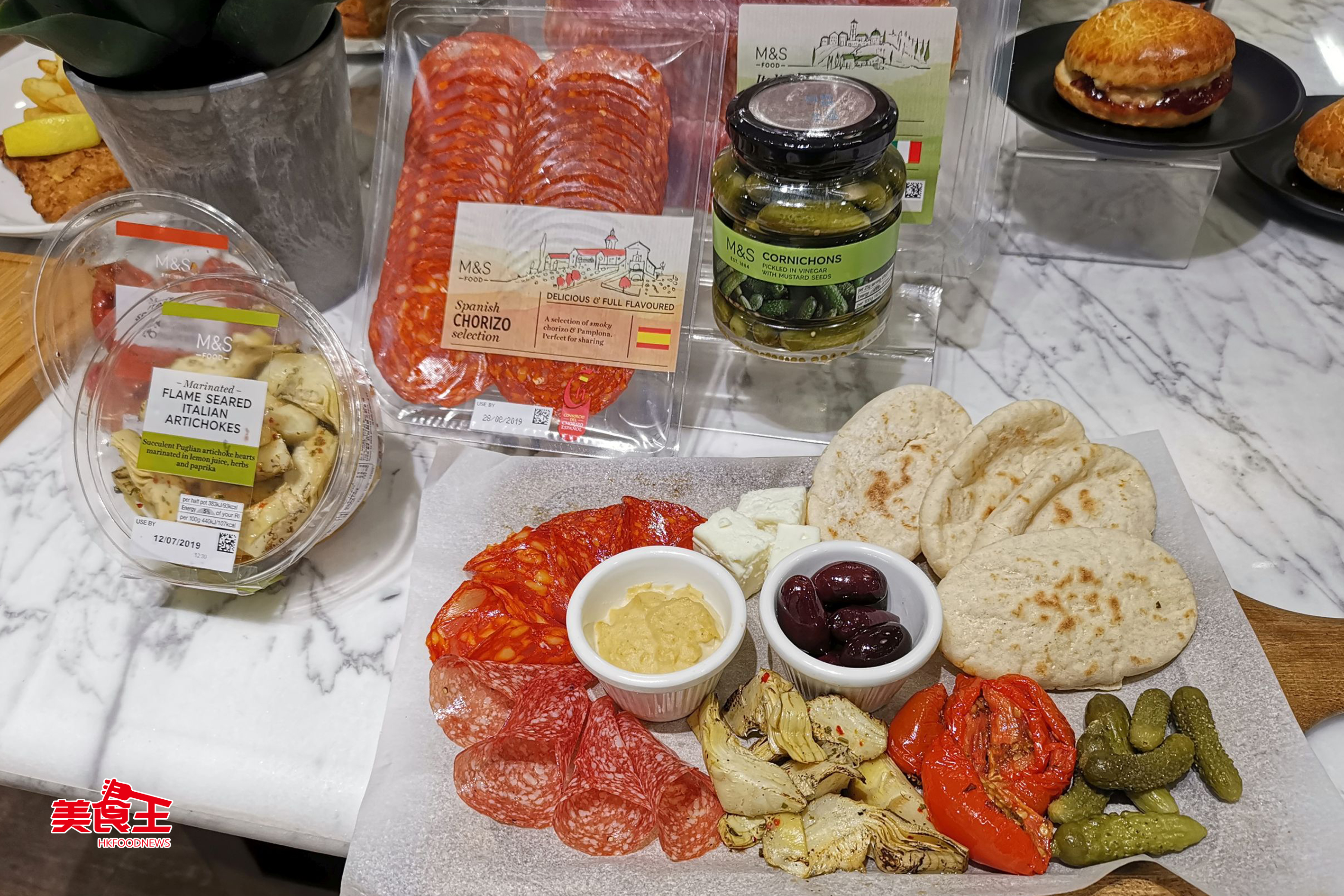 眾所周知要品嚐市面上的凍肉拼盤和芝士拼盤,動耴最少數百元不等,對於想以大眾化價錢一嚐來自世界各地的美味佳餚和拼盤的男女來說,絕對非他們所想的消費模式!M&S 首次推出只需百多元、但食材絕不馬虎的輕食飽肚拼盤,包括地中海拼盤及精選芝士拼盤,必然能讓大家盡情享受美食樂趣!拼盤中各式各樣的優質食材均搜羅自世界各地,如地中海拼盤($139)有特級初榨橄欖油雞心豆醬、西班牙辣肉腸、意大利沙樂美腸、橄欖油香草雅枝竹、慢烤藤茄、菲達芝士、有「橄欖之王」美譽的希臘卡拉馬塔橄欖、芥末籽醋浸小黃瓜、中東口袋麵包,非常豐富。