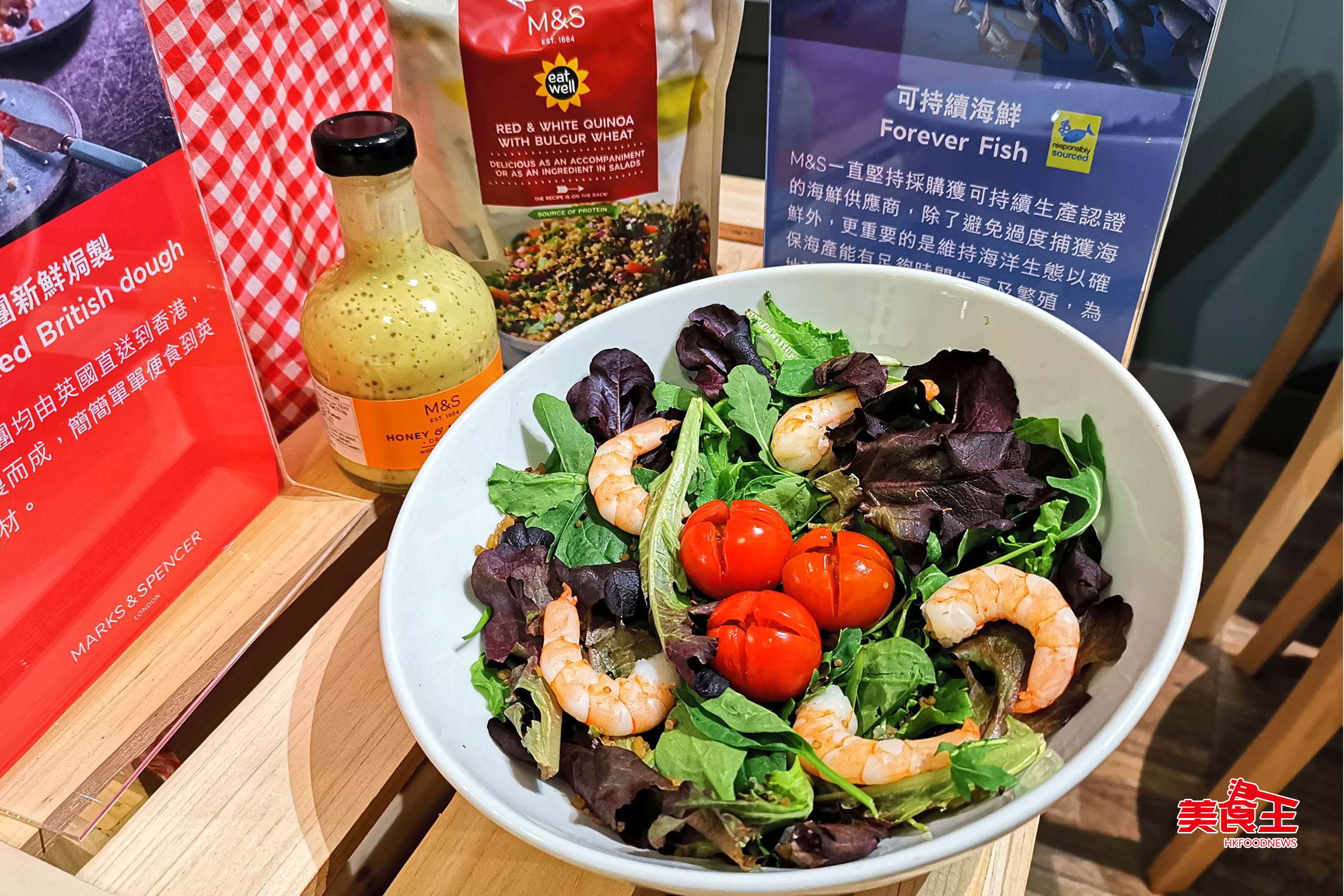 以海鮮作主材料的輕食餐單, M&S 繼續保留廣受歡迎的經典款式,並堅持採用獲可持續發展生產認證的海鮮供應商,確保食材來源安全可靠,表達出對保育地球下一代的責任和關注。