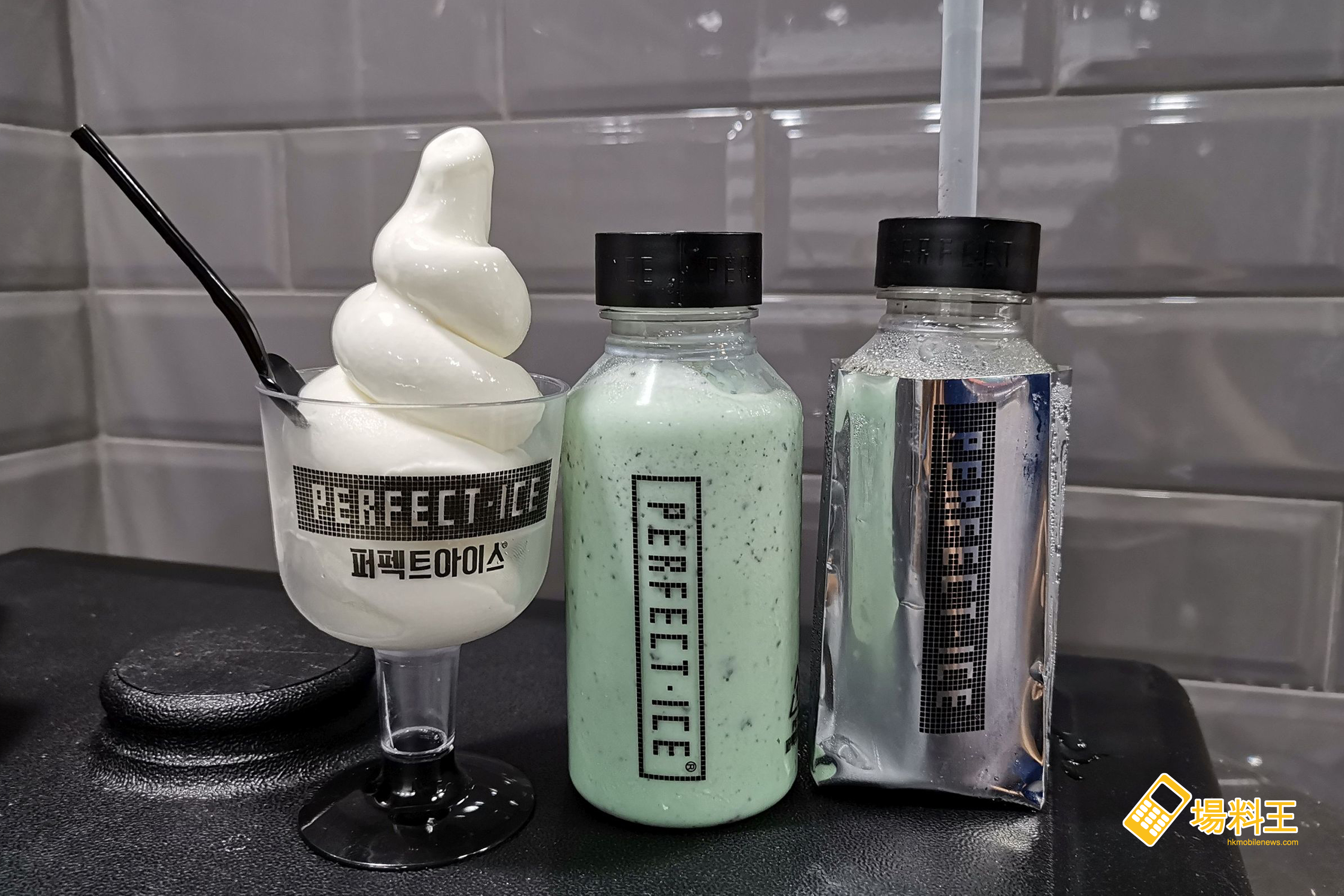 在 11 款不同味道的奶昔外,Perfect Ice 還提供雲尼拿味道的軟雪糕 ($30)。筆者亦試吃了薄荷朱古力奶昔及軟雪糕,一般的奶昔太稀,而這奶昔入口綿滑又帶點食材的質感,相信薄荷朱古力不難成為港人熱愛味道;至於軟雪糕有香濃的奶味,且因用料較多故耐溶時間也較長,入口滑而不會有起沙的口感,值得一試。