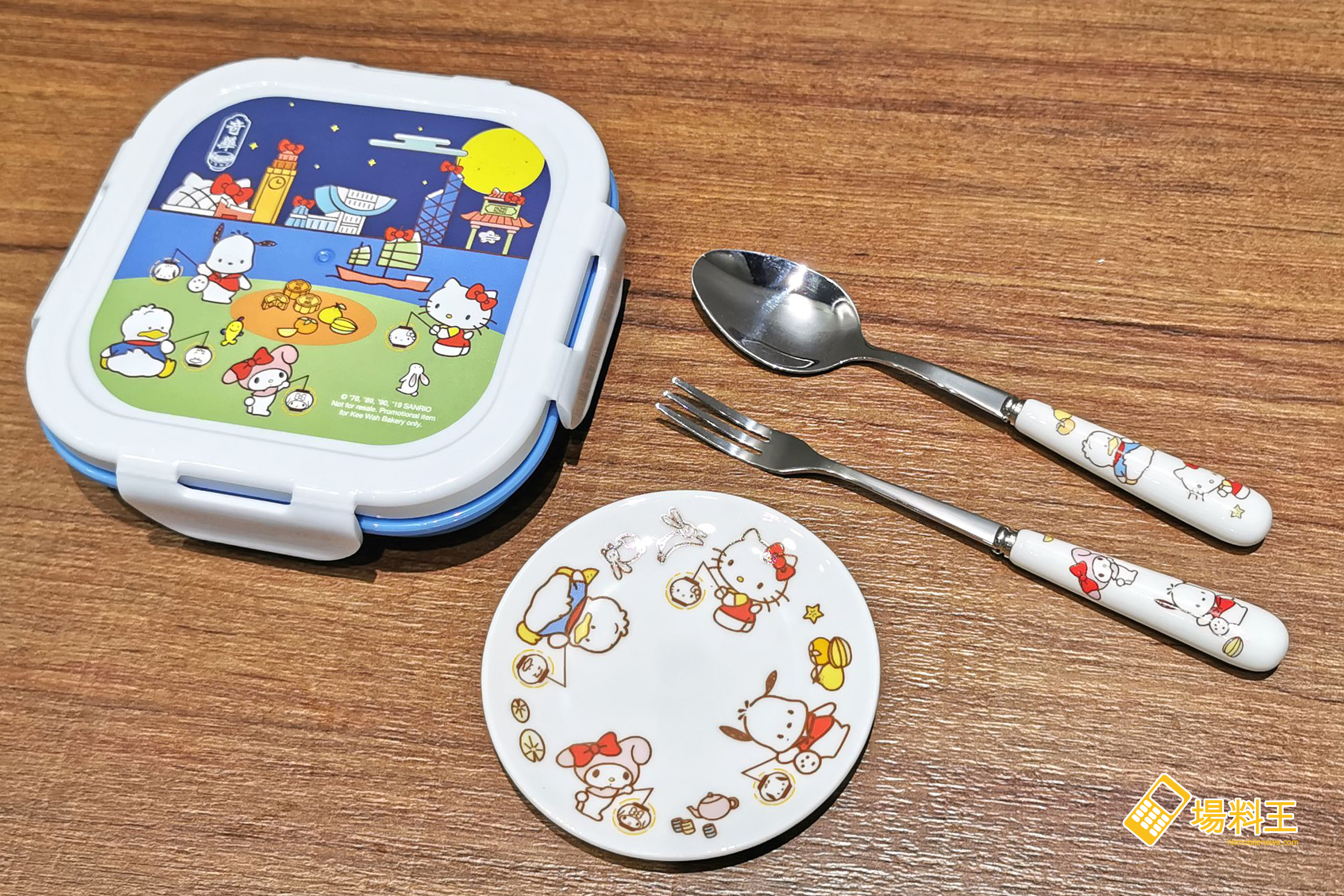 另於 9 月 13 日前,凡在奇華餅家惠顧滿 $80 (折實價),即可以優惠價 $30 換購「Sanrio 餐具套裝」(下圖右)及「Sanrio 迷你陶瓷碟」(下圖中) 各一份,或以優惠價 $38 換購「Sanrio 摺疊式餐盒」一個 (下圖左),換完即止。