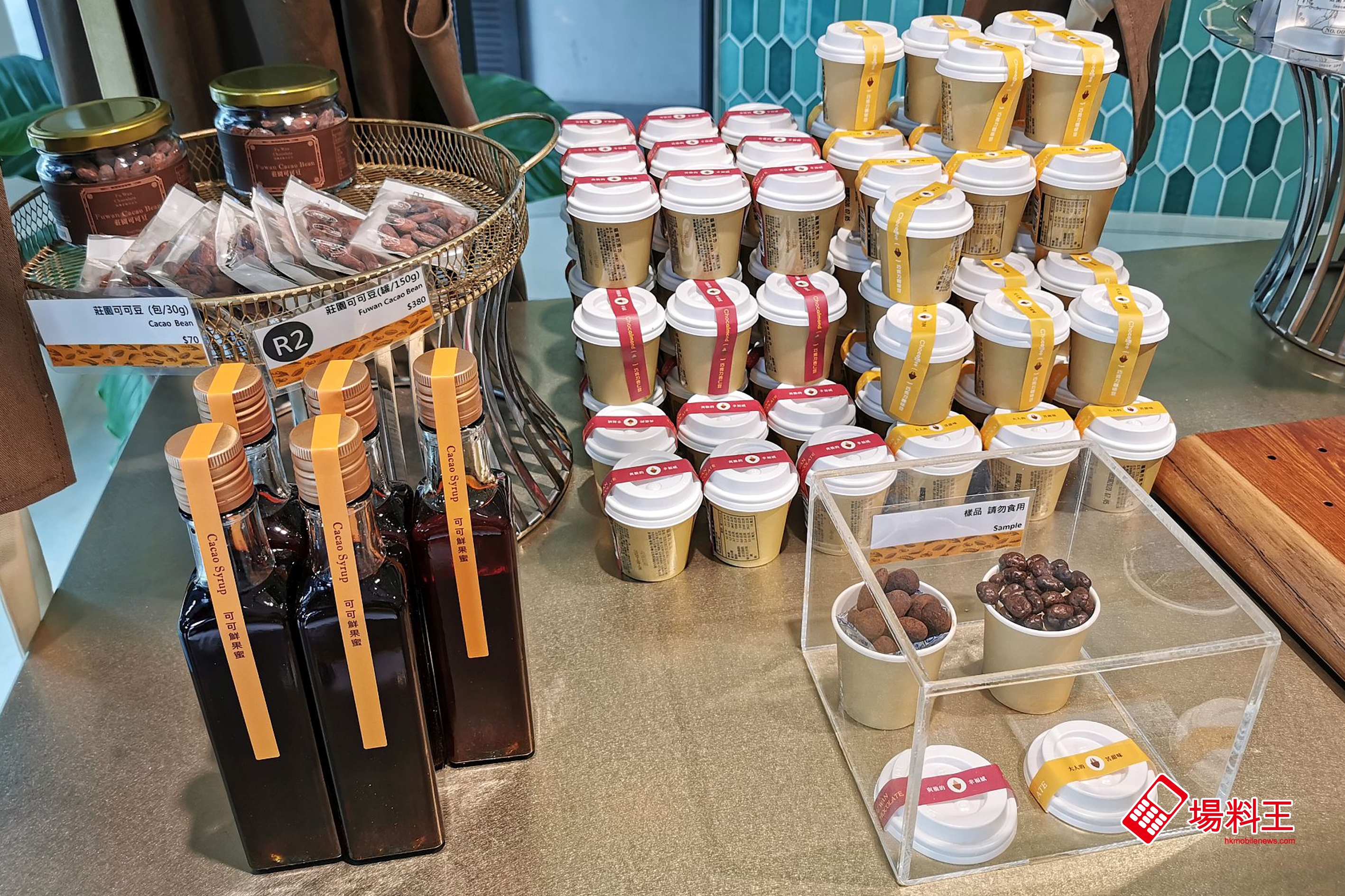 其他熱賣產品還有「可可鮮果蜜」(NT$220 / 下圖左)、「朱古力杏仁豆」(NT$75 / 下圖右二)、「朱古力咖啡豆」(NT$65 / 下圖右一)。