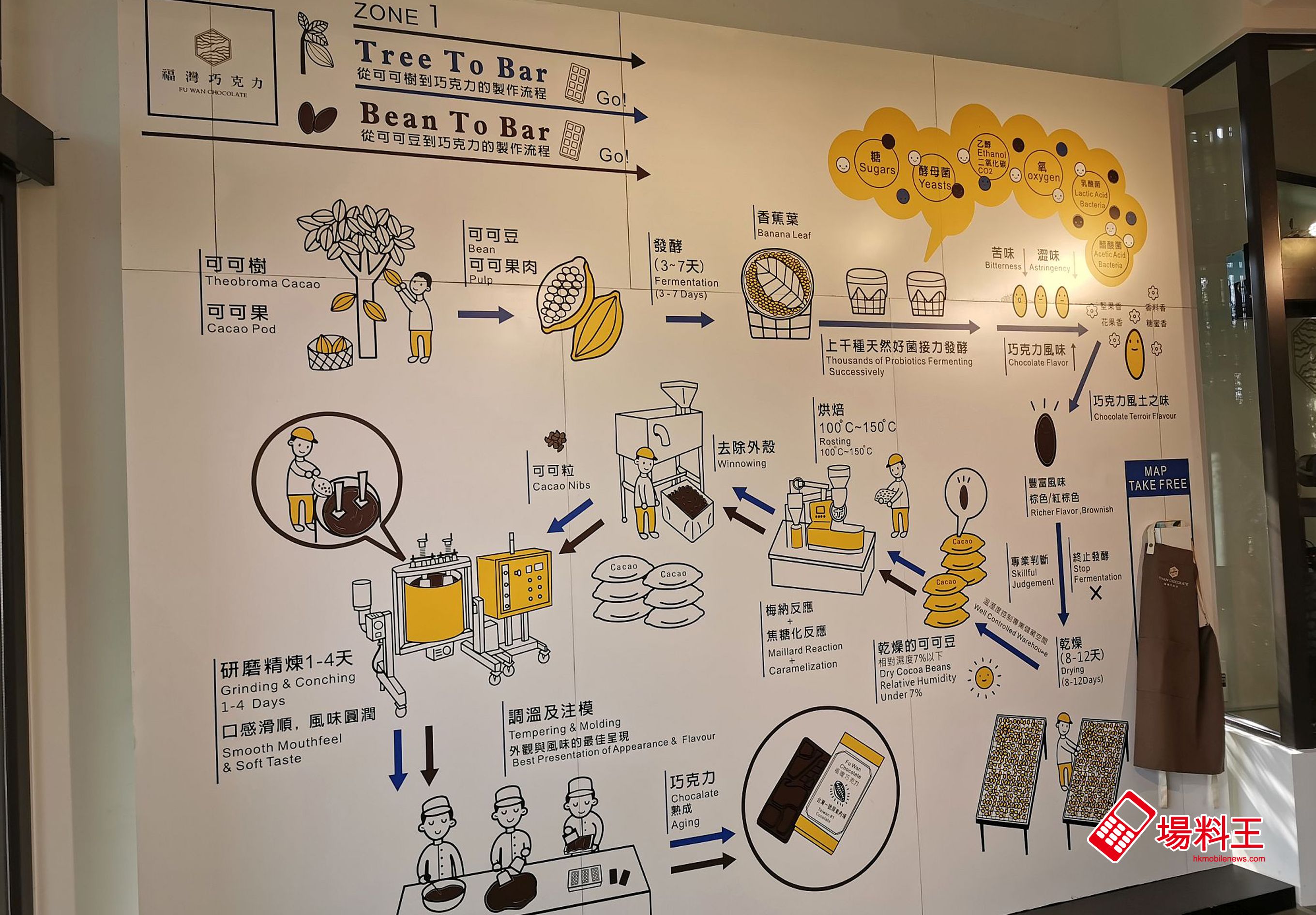 在品牌概念店的上層,是金牌巧克力夢工廠,當中主要是製成不同的朱古力的工場。這些可可豆,從種植、運送、發酵到製成朱古力都於當地完成,可說「產地直送」,非常新鮮!除了省卻海陸空運輸外,也能更有效地確保產品的品質,這也是有關產品受歡迎的原因之一。難怪品牌剛於本年 7 月獲得世界可可大獎,被認定為「世界50佳可可豆」之一。