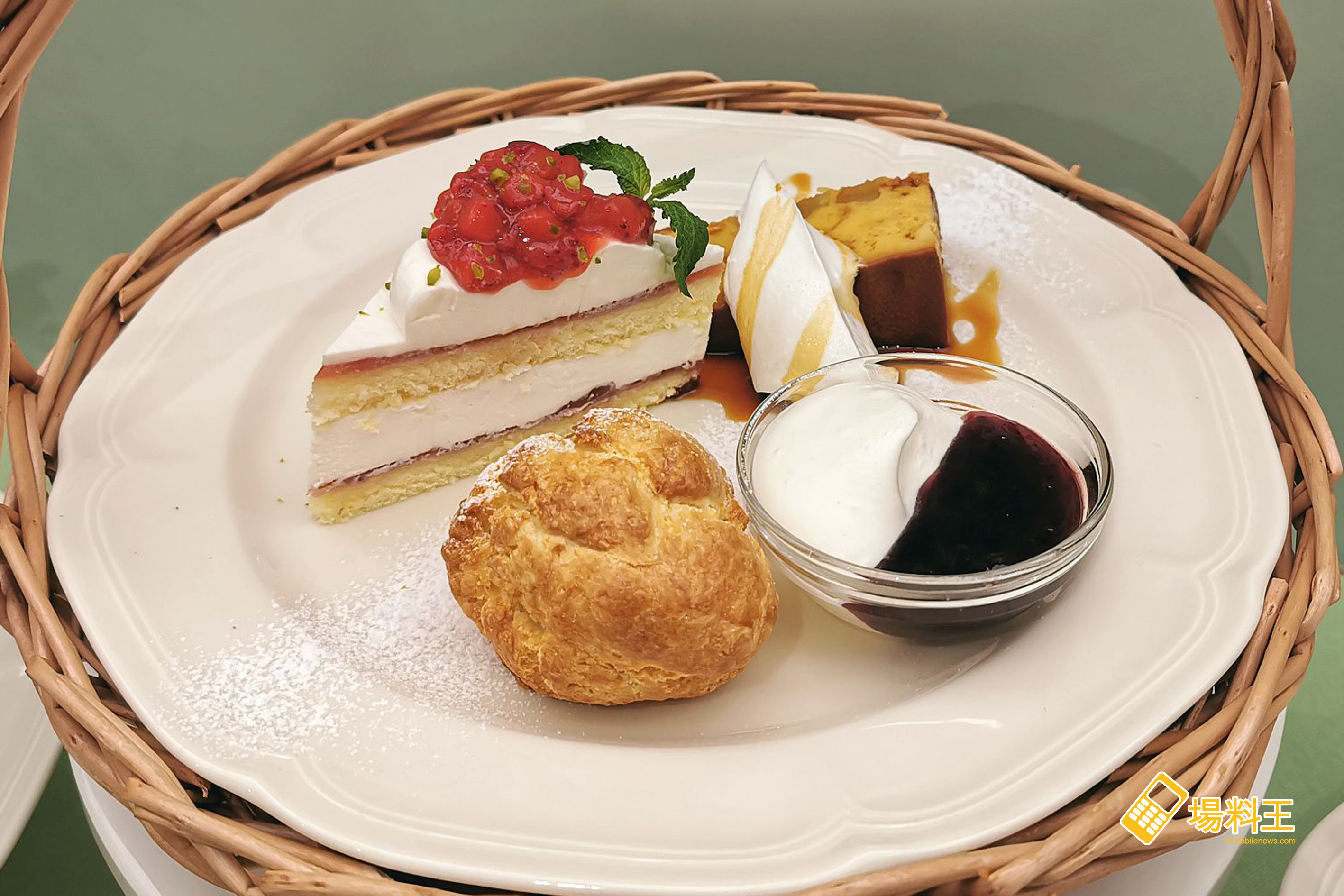Afternoon Tea 的蛋糕一向廣受歡迎,因蛋糕都是使用從日本北海道空運來港的鮮忌廉製成,故口感特別香滑,配上鬆軟的蛋糕。而店內提供的「Afternoon Tea Set」($168),大家可從約 8 種款式的甜點中,挑選 3 款甜點及 1 款紅茶,且整天都可享用得到。於 8 款甜點中,有包括加入北海道鮮忌廉製成「Strawberry Short Cake」、層次十足的「Strawberry Yogurt Cream Parfait」、以日本蘋果焗製後整個由日本空運直送香港的「Apple Pie」,還有每天在店裏新鮮烤焗的「Scone」或「Sweet Potato Pudding」等,都是品牌的熱賣之選。筆者則點選了「Strawberry Short Cake」(下圖左)、「Scone」(下圖前)、「Sweet Potato Pudding」(下圖右)。