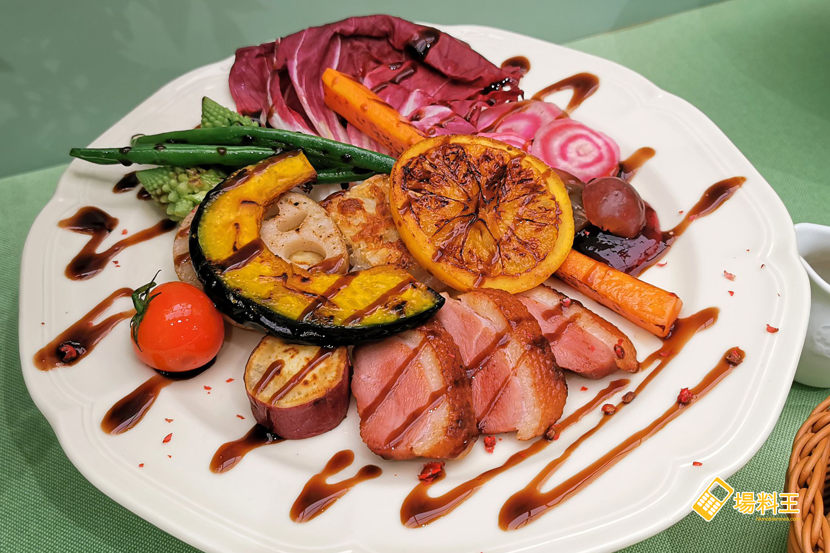 在甜點外,店內亦提供意大利粉、三文治等主食,且選用的有機、新鮮的食材為主,並依照日本的食譜烹調,故味道應日本 Afternoon Tea TEAROOM 相同。值得一讚的是其靈活性頗高,主菜可獨立單點外,都有提供包含沙律、餐茶的套餐供選擇,喜歡吃甜點的更可另加 $38 享用是日甜點。筆者試吃了以烤鴨胸配上 7 種不同温野菜的「Grilled Vegetables Plate with Smoked Duck」($138/套餐 $168),鴨胸肥美嫩滑,而菜類特別是南瓜、蕃薯等也很甜,配以 balsamic 醬汁夠惹味,值得一試。