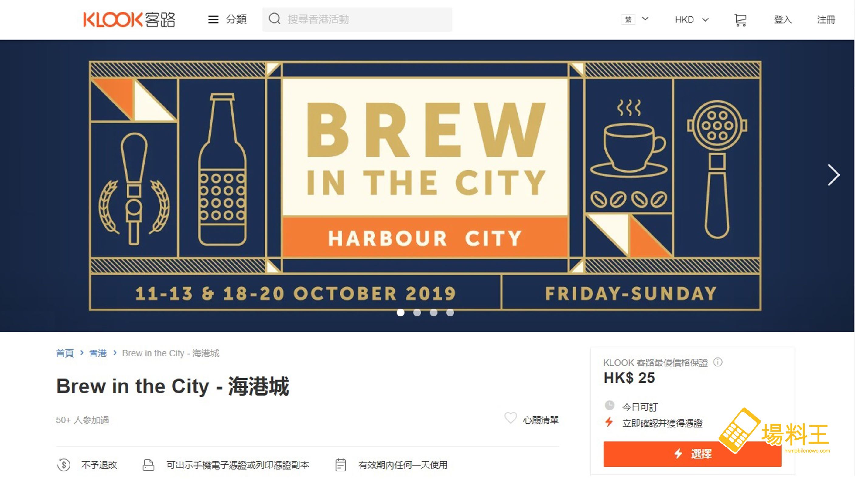 為讓一眾咖啡及啤酒愛好者嚐盡不同的精品咖啡及手工啤,《Brew in the City》 與全球領先旅遊體驗預訂平台 – Klook合作推出電子品嚐券,品嚐券每張售價 $25,每次最少購買 5 張,憑優惠價換購小杯裝飲品,適合與知己同享滋味,或想淺嘗不同飲品的人士。客戶下載 KLOOK App 並註冊成為新用戶後,透過 Klook 平台購買品嚐券,即可在會場所有攤位以App內憑證兌換精品咖啡及手工啤酒與場內限定精品等。(品嚐券詳情請參閱:https://www.klook.com/zh-HK/activity/28633-harbour-city-hong-kong/)