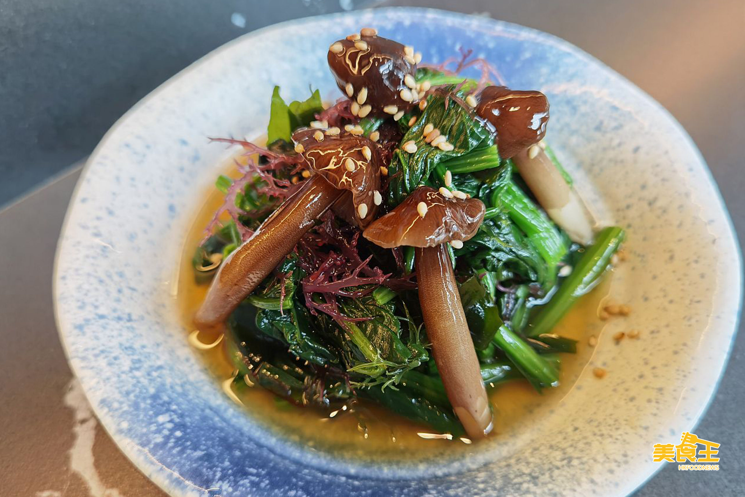 此外,品牌為新店特別增設了 4 款小食,分別為選用野生紋甲墨魚打成滑,用鮮雞皮包著炸的「鳥皮烏賊揚」($68 / 上圖),外脆內彈牙,夠香口;另有採用豚肉釀入大量香濃芝士配上麵包糠炸至鬆脆可口的「一口芝士脆豚」($70),很惹味;至於「銀鱈醬油燒」($118) 嚴選油脂重、肉質嫩滑的野山銀鱈魚,配秘製醬油燒至皮脆肉嫩,佐酒更是一流;而選用新鮮菠菜配以日本直送的三色海藻,加上蛋白質豐富的雞縱菌的「三色海藻菠菜淺漬」($52 / 下圖),則是健康素食之選。