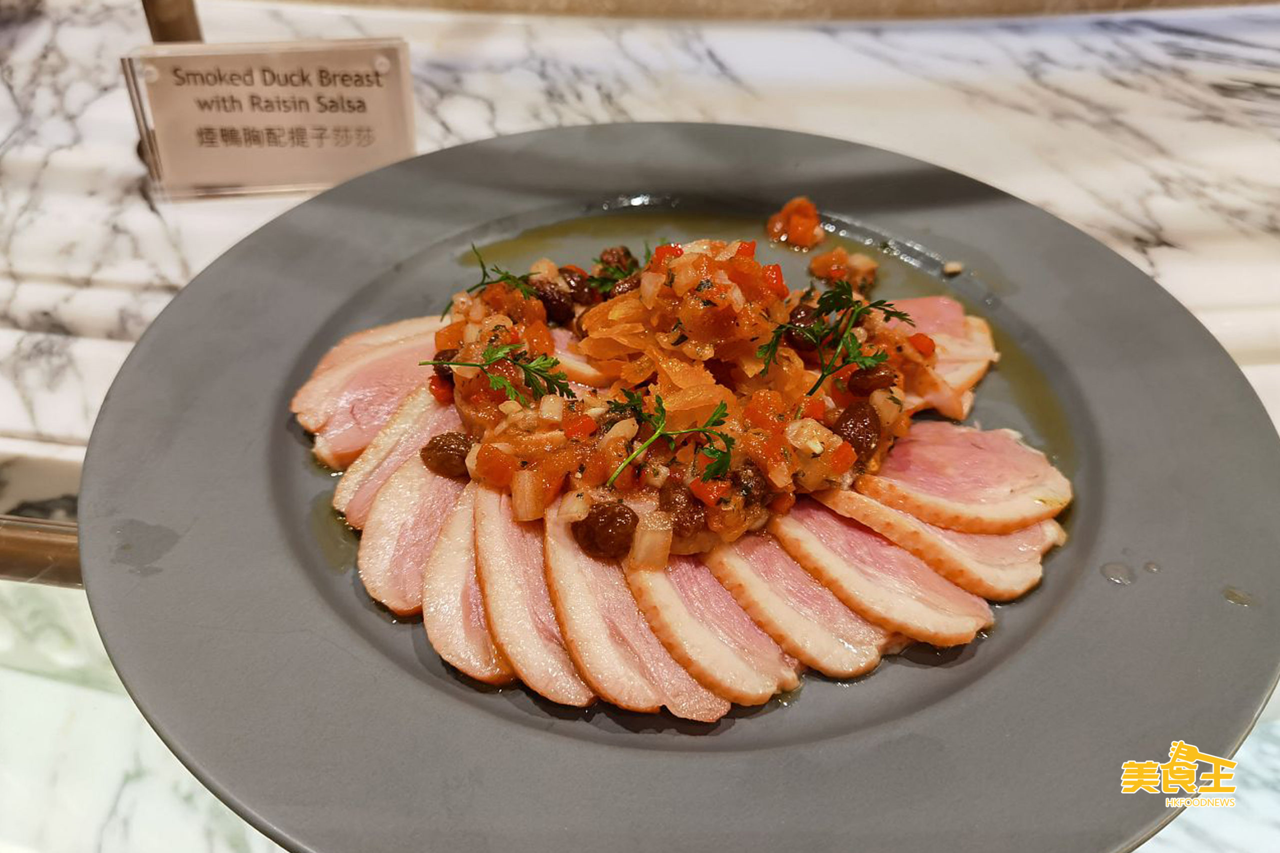 前菜選擇還有煙鴨胸 (下圖)、多款芝士、10 款雜菜的沙律吧等。
