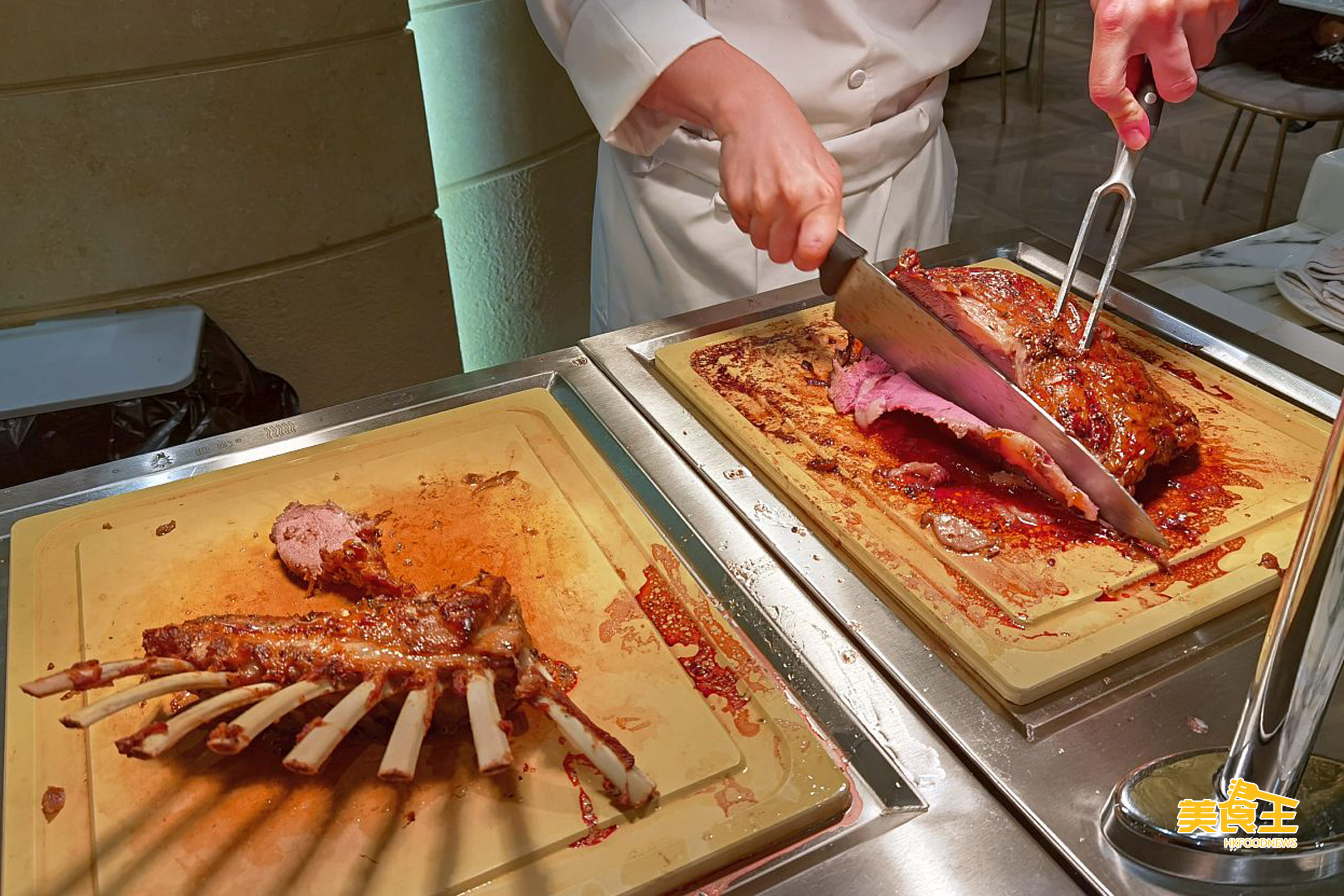 熱葷則首推慢烤特級肉眼扒、香草烤羊鞍 (下圖);其他有常見的紅酒燴牛尾、松露醬香草烤雞、清蒸大海斑等,亦有少量咖哩、薄餅以迎合不用食客的喜好。