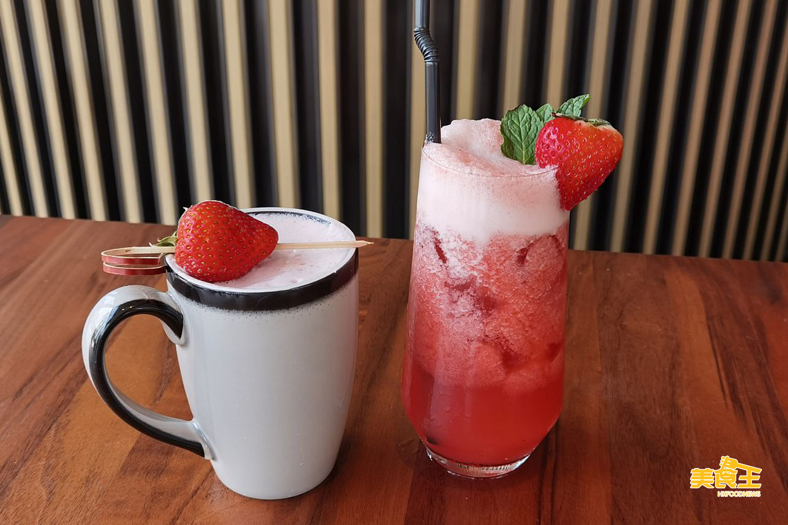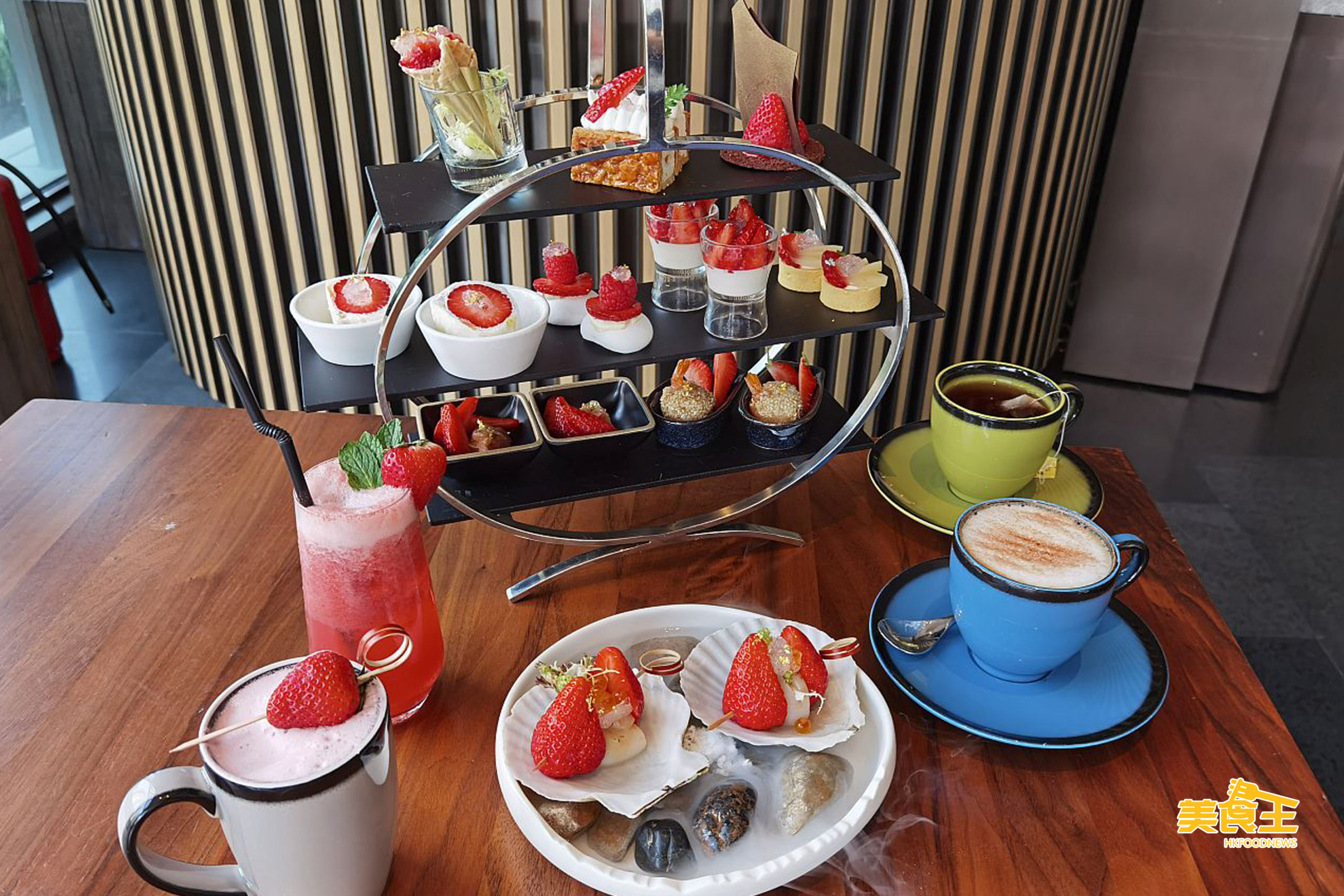 在 4 鹹、6 甜的精緻糕點後,大家除了可點選茶啡以外,也可額外加 $38 把飲品升級為士多啤梨特飲,熱飲為「士多啤梨牛奶」(上圖左),冷飲可選「士多啤梨梳打」(上圖右);另如選購下午茶外賣,套餐餐價稍貴,因飲品將升級為有汽葡萄酒一瓶。
