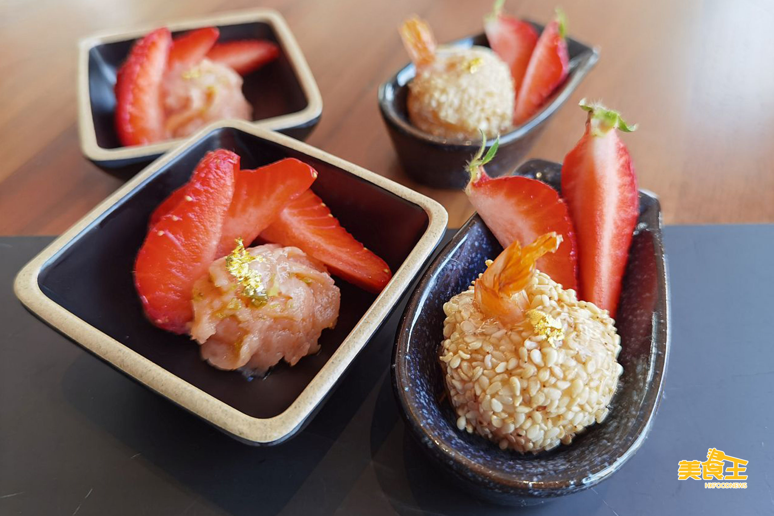 特色鹹點還有「福岡甜王士多啤梨燕窩蟹肉甜筒」(上圖右)、「福岡甜王士多啤梨燕窩配煙三文魚慕絲杯」(下圖左)、「福岡甜王士多啤梨燕窩芝麻蝦多士」(下圖右),都香口惹味。