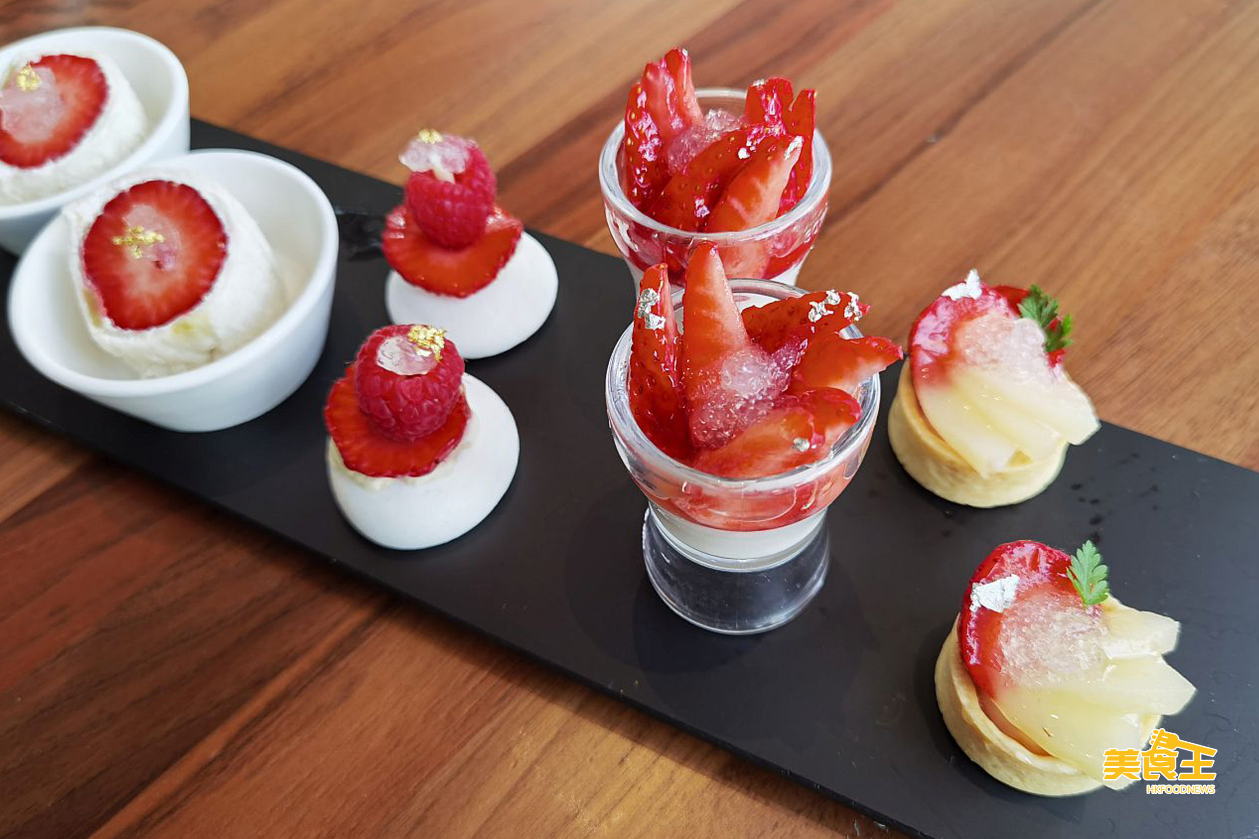 福岡甜王士多啤梨色澤紅潤、果肉飽滿香甜,是港人最熟悉的日本士多啤梨之一,大廚配搭矜貴且具滋潤美肌功效的燕窩,推出了多款鹹甜茶點。