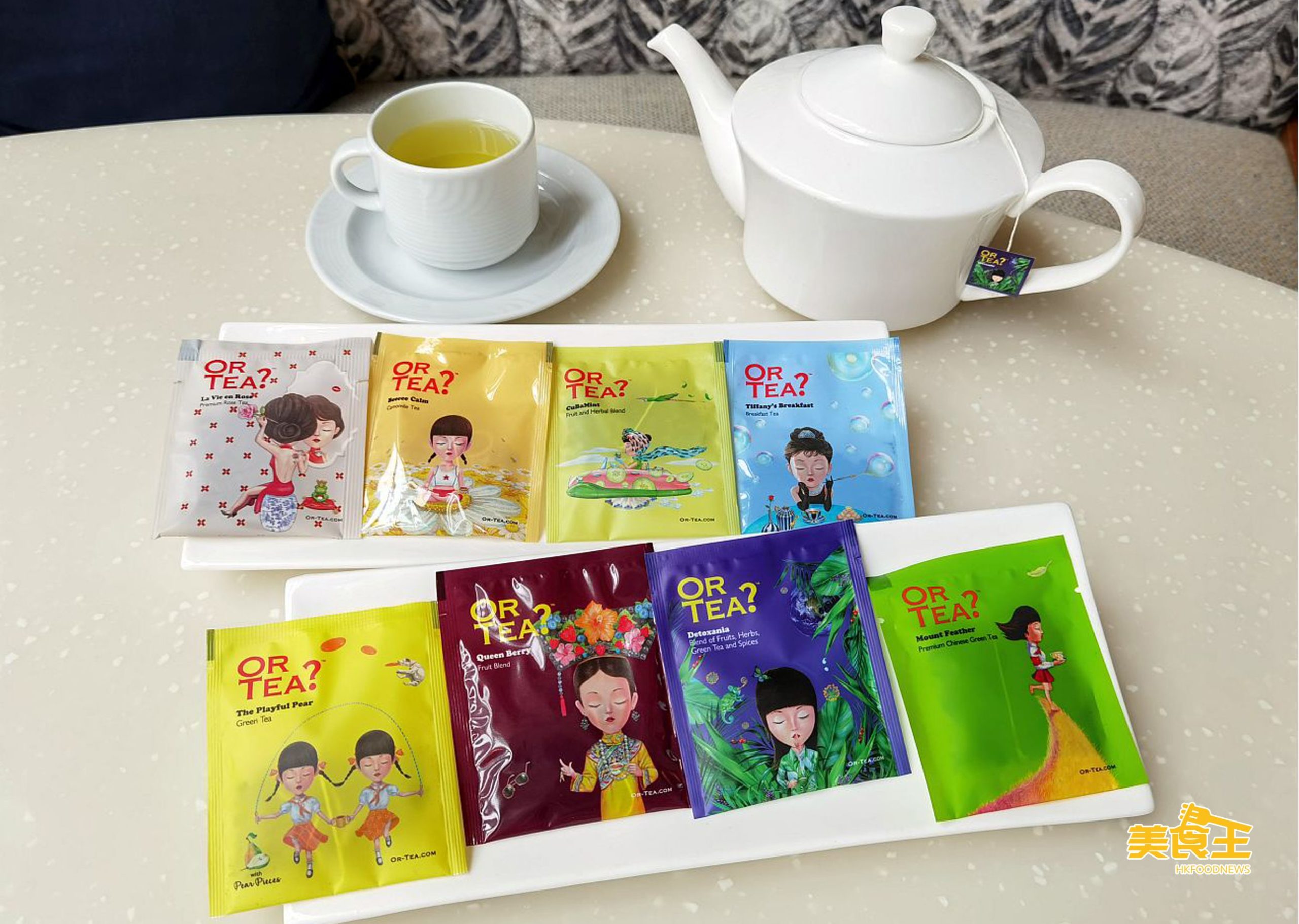 餐點附送一般的茶啡以外,更可選擇多款由香港品牌「Or Tea」搜羅自多國不同名茶而製成的多款不同味道的茶包,且其有趣精美的包裝加上優質的茶包,早已於多國發售,卻於餐廳少有提供,當中味道包括英式紅色、水果茶、薄荷茶等味道,值得一試。