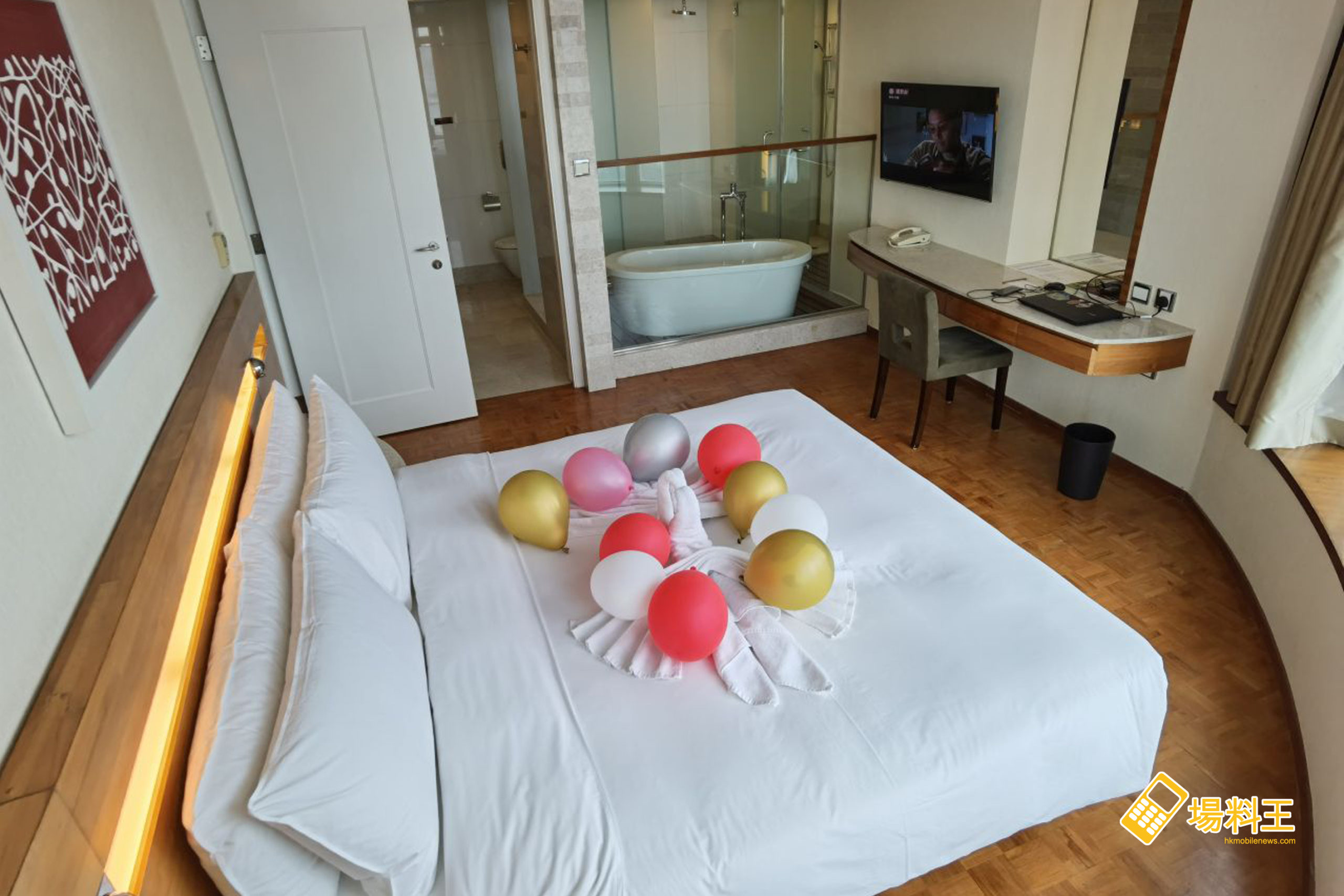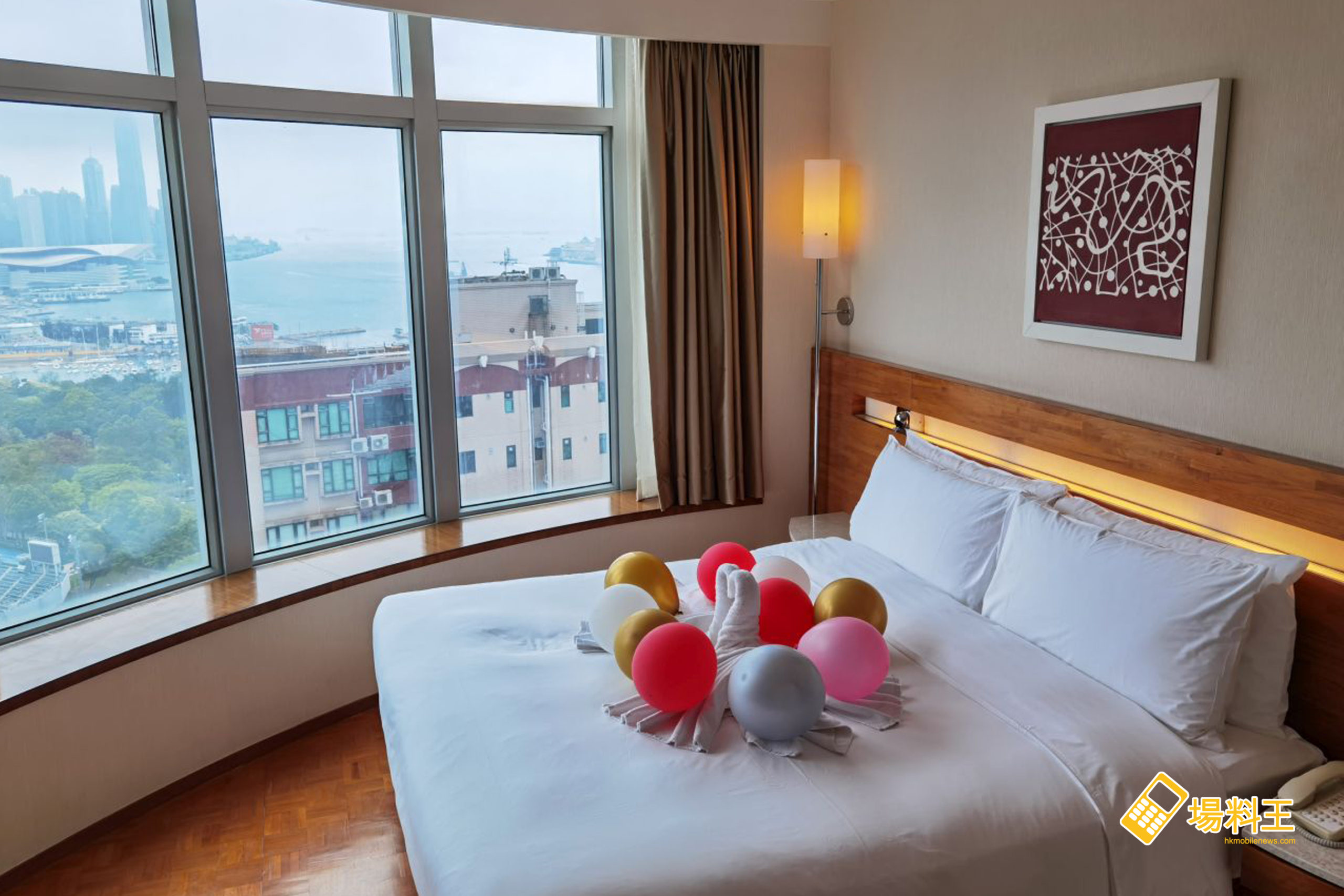 加上身在床上亦可遠眺遼闊維港景致,又或晚看夜景,確也十分寫意;可惜筆者入住當日天氣只屬一般,否則藍天加海景定再加分不少。