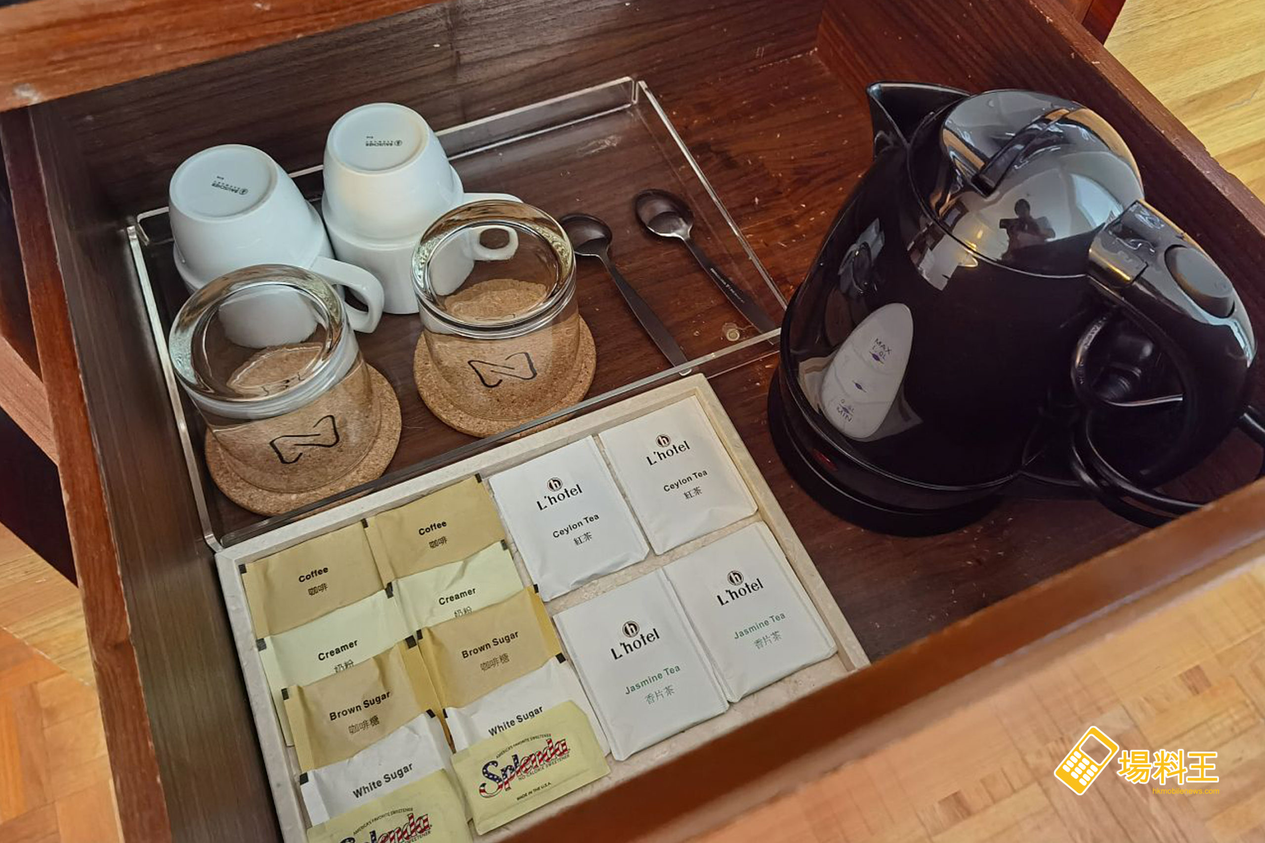一般情況,房間只提供 2 支水,除了熱水壺供使用外,餐櫃已備有包裝茶、啡供享用。