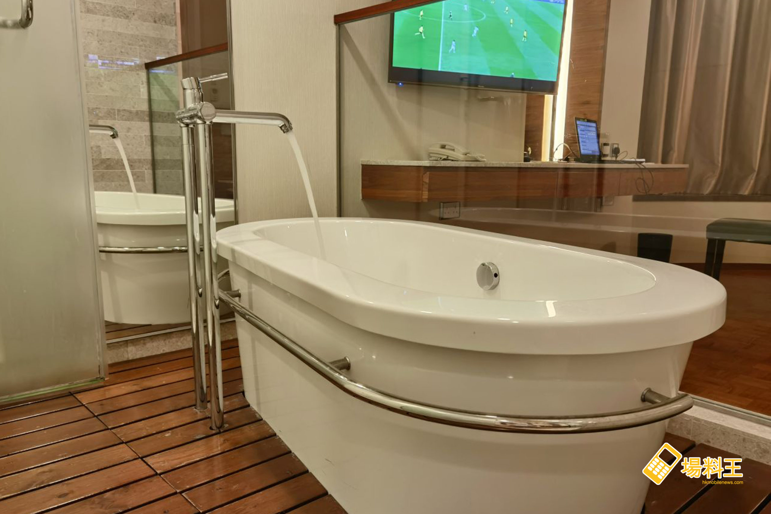 寬敞的浴室同時設有獨立淋浴間及貴妃浴缸,部分房型更用上半開放式設計,大家可於浴缸中泡浴時欣賞電影或球賽等節目,這都是一般在家難以享受的活動吧!