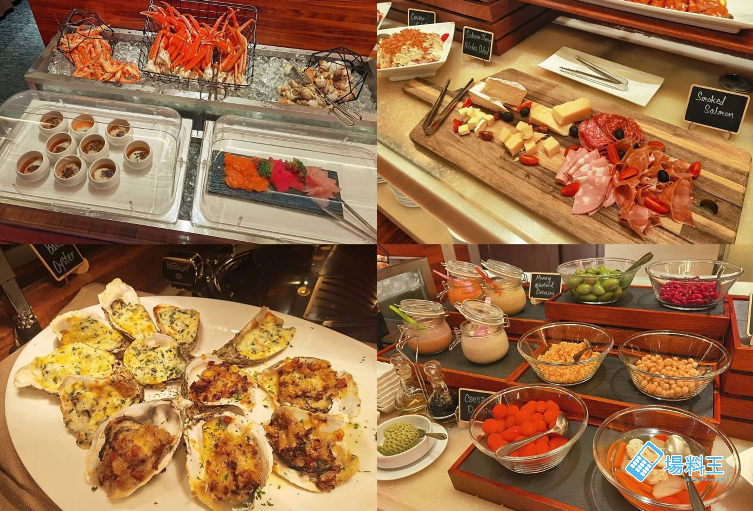 自助晚餐的供應時間為晚上 6:30 至 9:30,備有如鱈場蟹腳、凍熟蝦、青口及翡翠螺等多款冰鎮海鮮及剌身,也有多款芝士、火腿、沙律,並有龍蝦濃湯,及不同口味的焗蠔輪流供應。