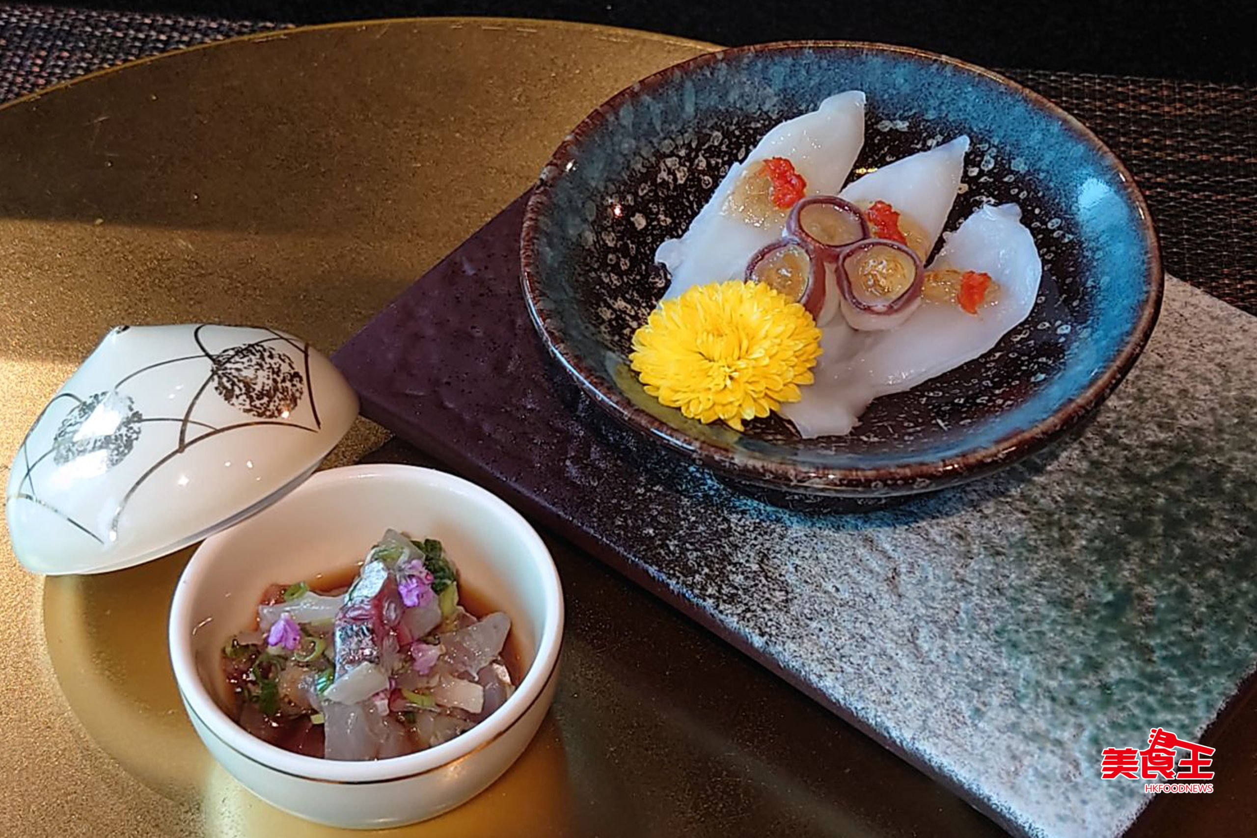 刺身用上北海道魷魚 (上圖右),口感較軟腍;而來自淡露島的池魚 (上圖左) 以醬油佐味,更能帶出池魚的鮮味。