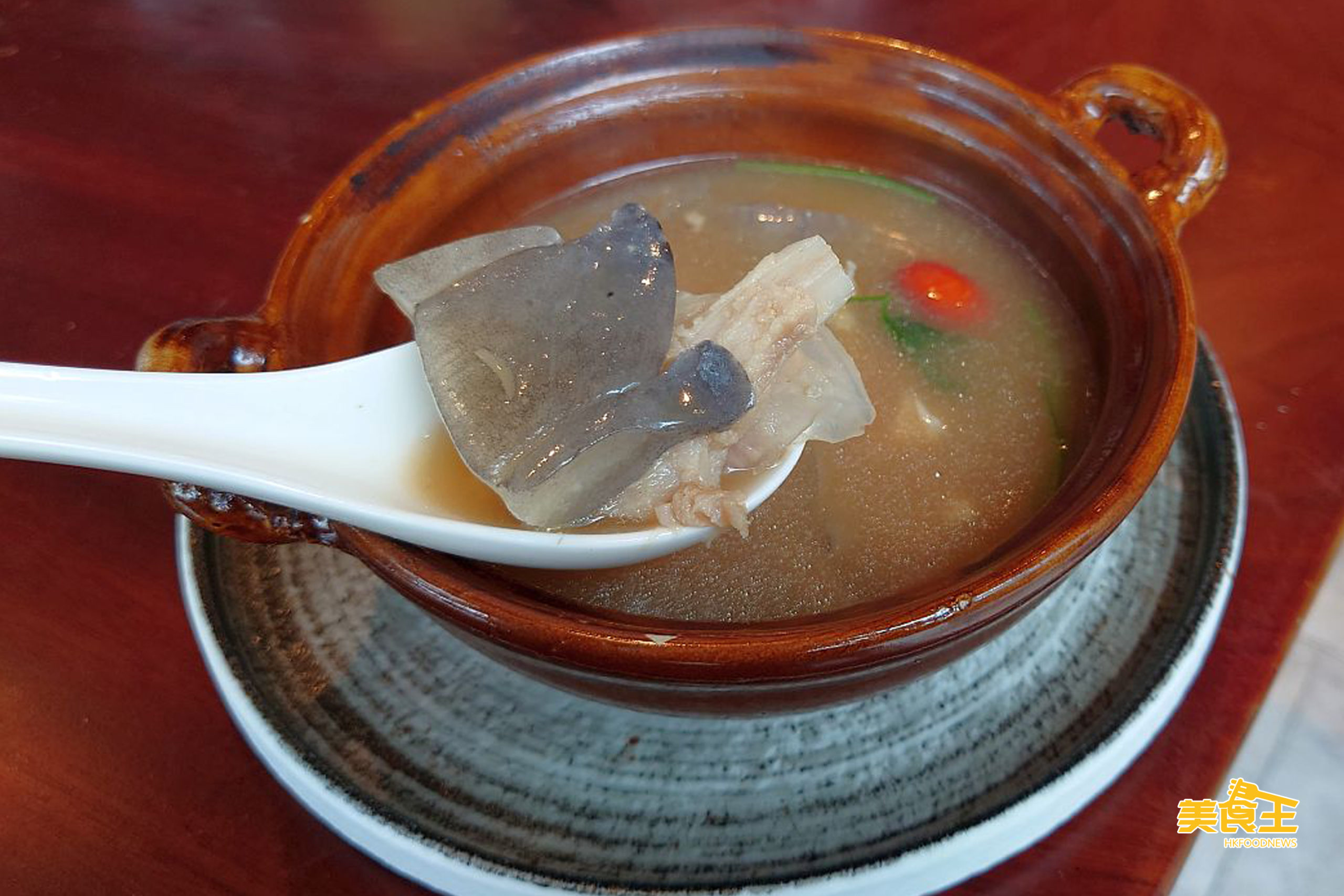 至於另一必試的是採用膠質豐富的鱷魚近尾部的肉配以多種藥材及調味後經 6 小時熬製而成的「滋補鱷魚尾膠養生湯」($218/2人份),味道清甜不腥且骨膠原豐富,具益身之效,日賣約 30 客,售完即止。