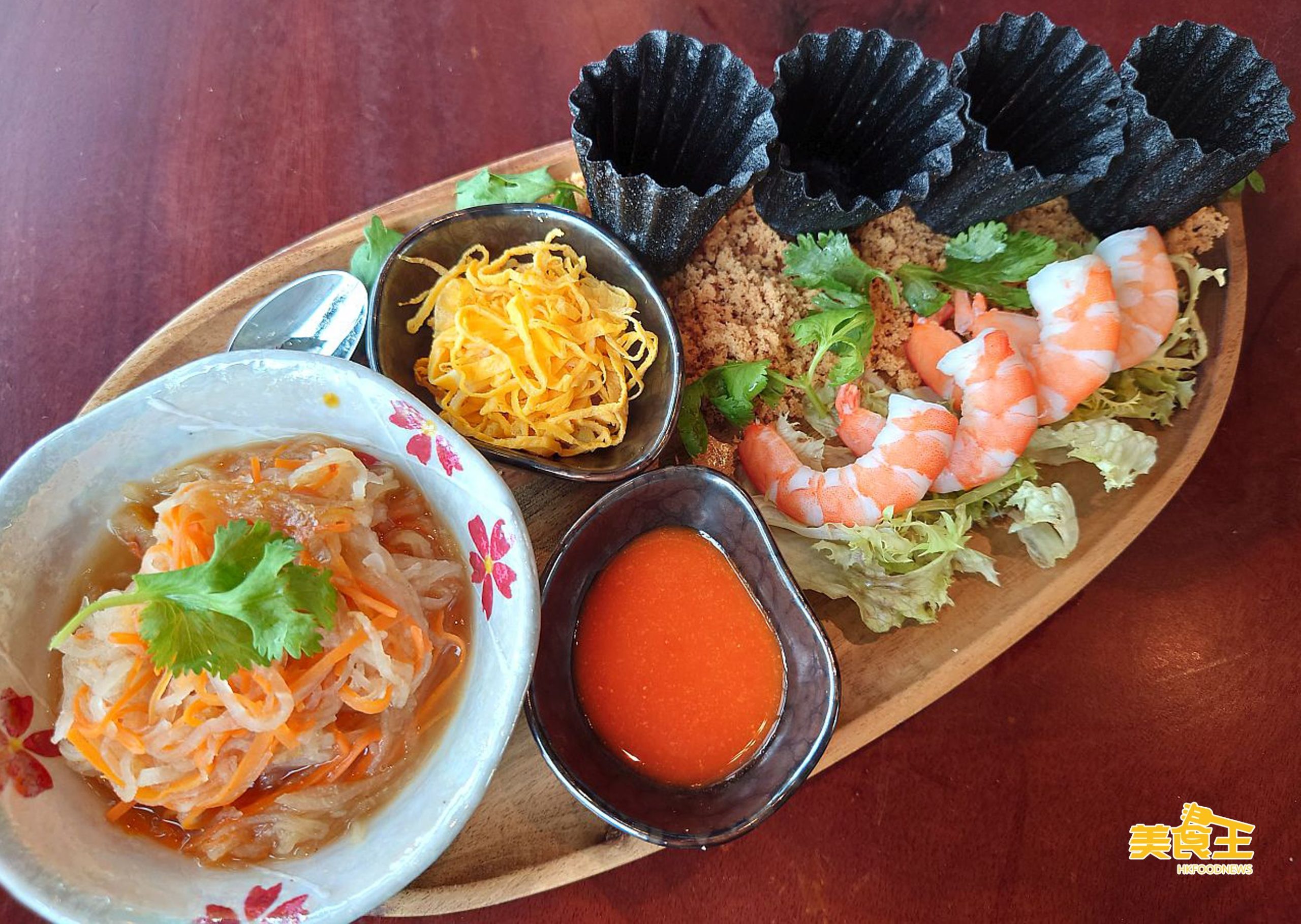 大廚還把馬六甲有名的娘惹菜小食「小金杯」改以日本黑竹炭製的「娘惹黑炭小金杯」($88),再讓食客因應個人喜好加入蝦肉、蛋絲、沙葛絲、蘿蔔絲及及調味醬料同吃,好玩又美味。