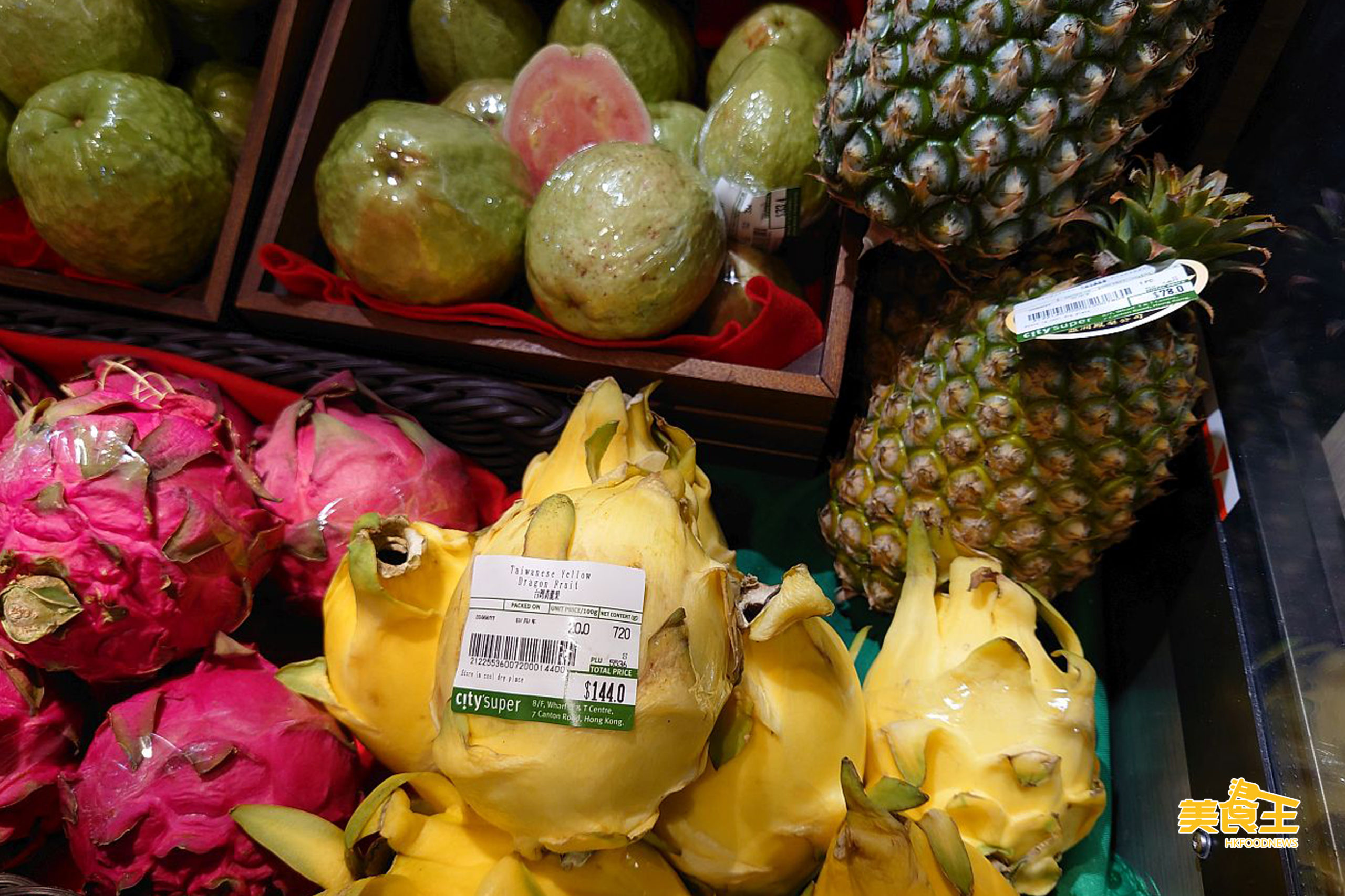 先看近期當造的多種台灣水果,除早前熱話主角金鑽鳳梨外,更有蓮霧、紅心芭樂 (下圖上)、黑杏或金鍠芒果,以及較少見香瓜、黃龍果 (下圖中)。