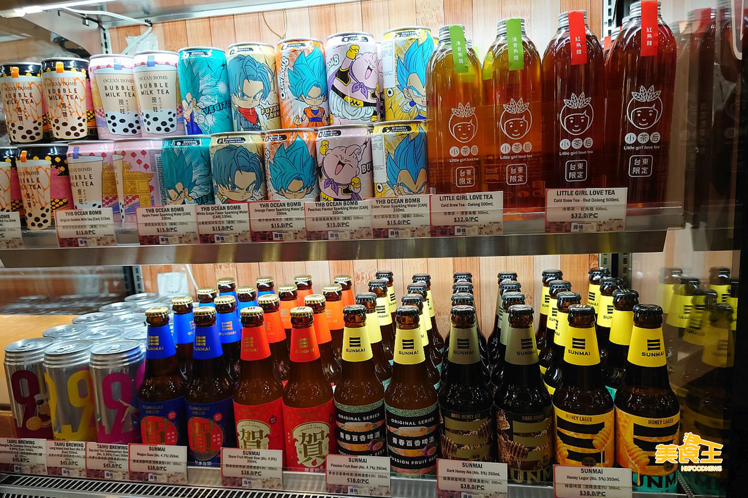 其他飲品還有「員林」以百年古法製的仙草凍 ($26) 及仙草甘茶 ($14);由台灣冠軍「茶王」陳錫卿之女創立的「小茶后」其推出了烏龍、紅烏龍 2 款新口味的冷萃茶 ($32 / 下圖右上);「Ocean Bomb」以七龍珠特別版推出的多款果味氣泡水 ($15 / 下圖中上);加入蜂蜜、百香果等釀製的「金色三麥」精釀啤酒 ($38 / 下圖右下)。