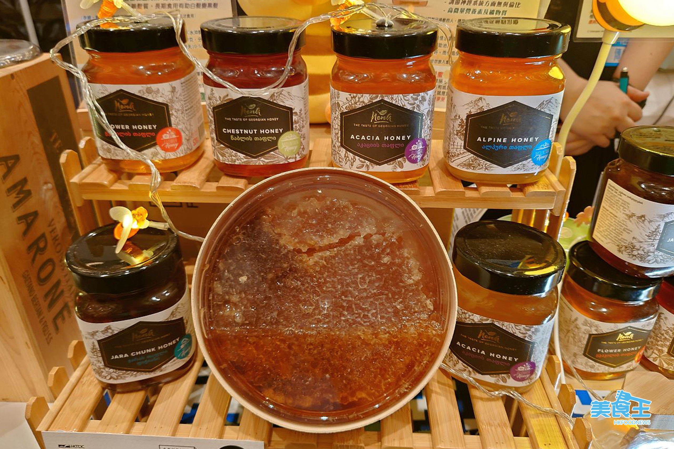 近年疫情關係,有關健康、養生的食品更是大賣,而格魯吉亞酒莊食品 (展位:3C-E07) 則帶來號稱全球最古老、已有 7000 年發展歷史、來自格魯吉亞的天然野生蜂蜜「Nena 蜂蜜」,當中分為金合歡蜂蜜、百花蜂蜜、高山蜂蜜、栗子蜂蜜、雅拉蜂巢蜜五種樽裝蜂蜜,售價由 $388-$528 (350g,原價 $435-$589)、$558-$698 (520g,原價 $625-$775);另會場優惠「買 2 瓶 520g 送 2 瓶 350g。至於木盒裝的雅拉蜂巢蜜,則賣 $1,268 (下圖中,原價 $1,410 / 500g)。
