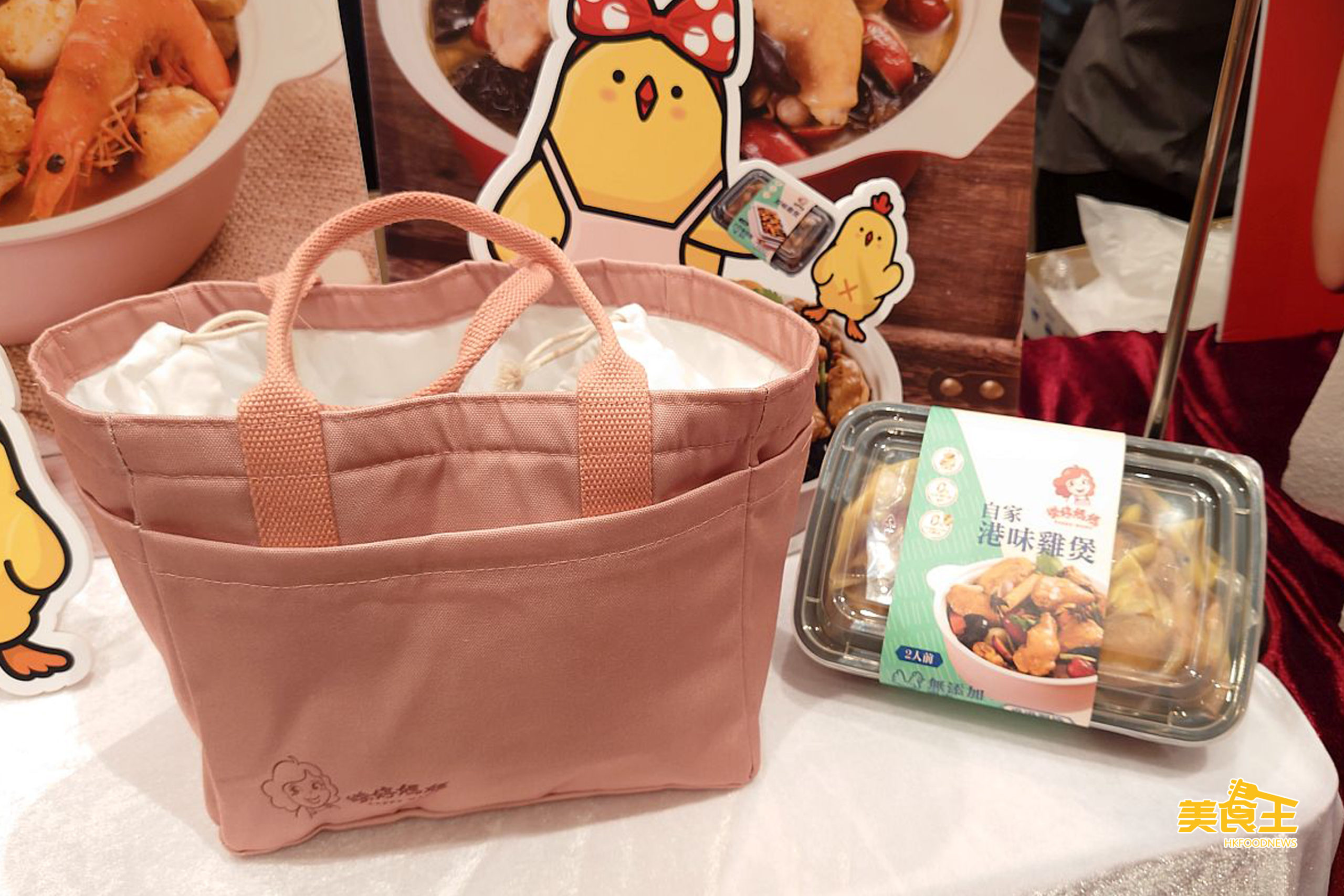 「樂婷媽媽」除了於每天 20 個名額 (總數 100 個) 讓進場人士以 $1 選購「自家港味雞煲」或「惹味香辣雞煲」外,凡第 11 位至第 30 位顧客,也可以 $68 超特惠價購買雞煲換領券。另如購買 2 個雞煲,可以 $1 換購附索繩設計的精美保暖袋 (下圖),賣完即止。