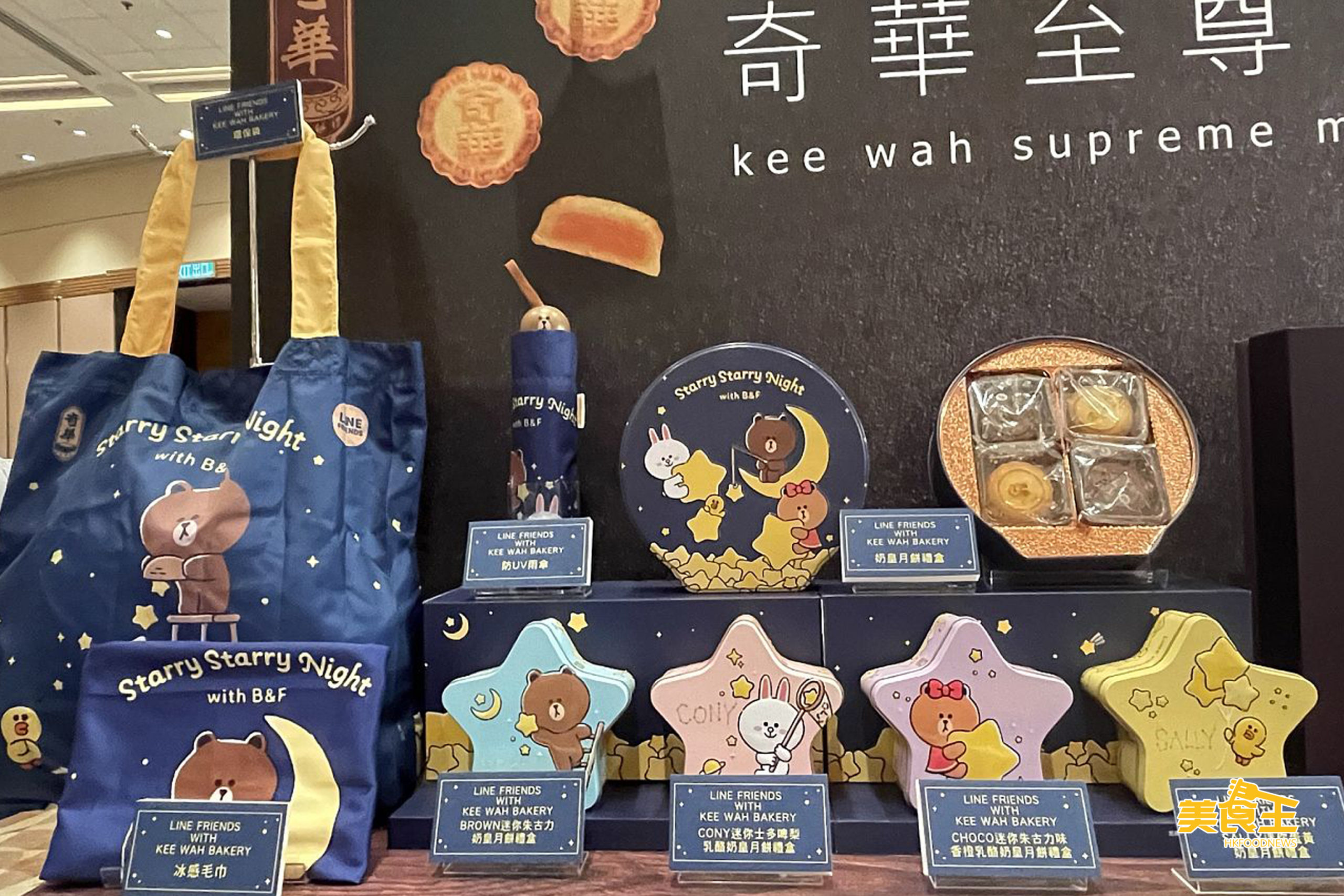 其他優惠方面,筆者推介奇華餅家 (展位:1D-D02) 的「Line Friends With Kee Wah Bakery 奶皇月餅禮盒」,當中提供「4 個裝奶皇月餅福袋」(下圖上)、「單個裝奶皇月餅福袋」(下圖下),兩者除了同樣贈送「環保袋」(下圖左) 外,前者加送「防 UV 雨傘」(下圖中),後者則加送「冰感毛巾」(下圖左下),兩者的產品總值為 $306、$316,而會場售價卻只同為 $160,即等同近乎半價。而在外的正價,都比這價錢稍高之餘,只送環保袋,而「防 UV 雨傘」、「冰感毛巾」都需另加錢換購,故十分抵買!兩者每日各限售 100 套。