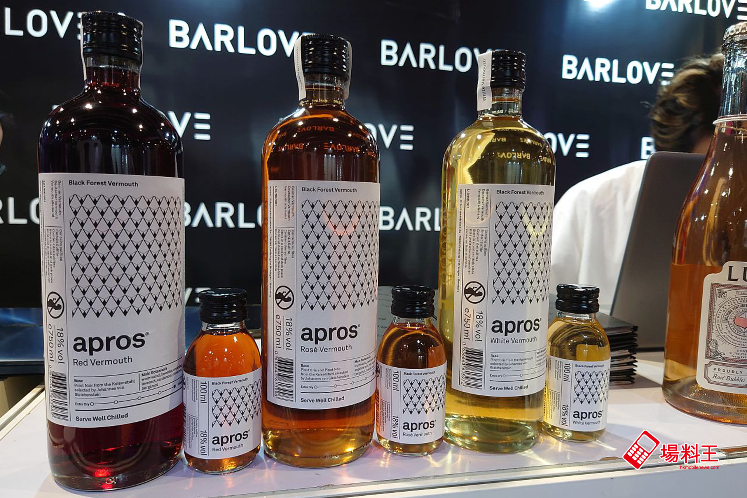 由於同場舉行國際葡萄酒與烈酒貿易展覽,故不少酒品亦可見到,由建立約只一年、致力搜羅各地別具特色的小品酒品的本地品牌 Barlove,除了曾推出由南非引入的全天然純素認證的 Lubanzi 葡萄酒外,更有來自英國、樽身設計精緻的 Walks 品牌帶來的氈酒,亦有最新到港、在其門市亦未發售、來自德國以草本植物加入手工葡萄酒而成的 3 款 Apros 香艾酒 (下圖)。