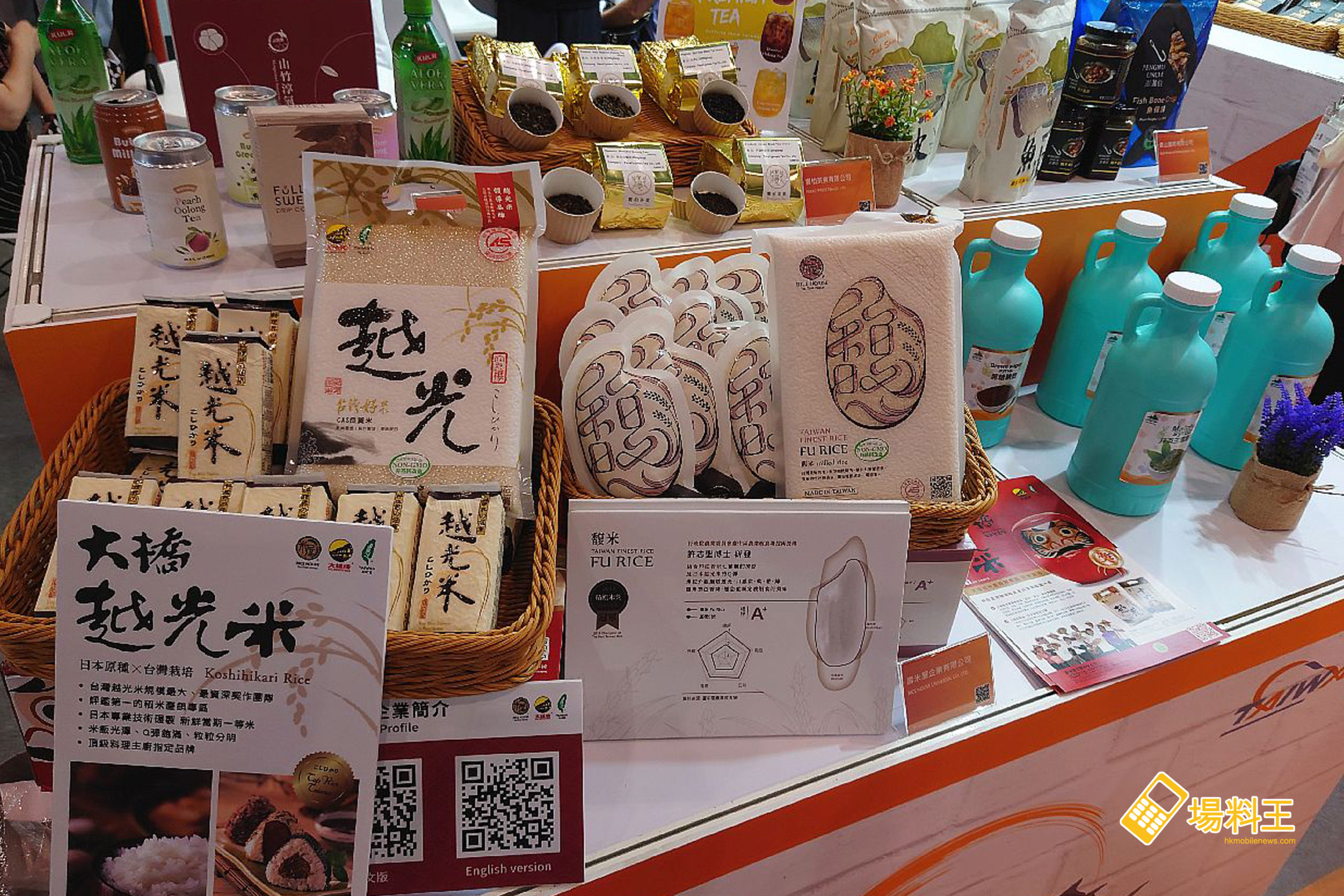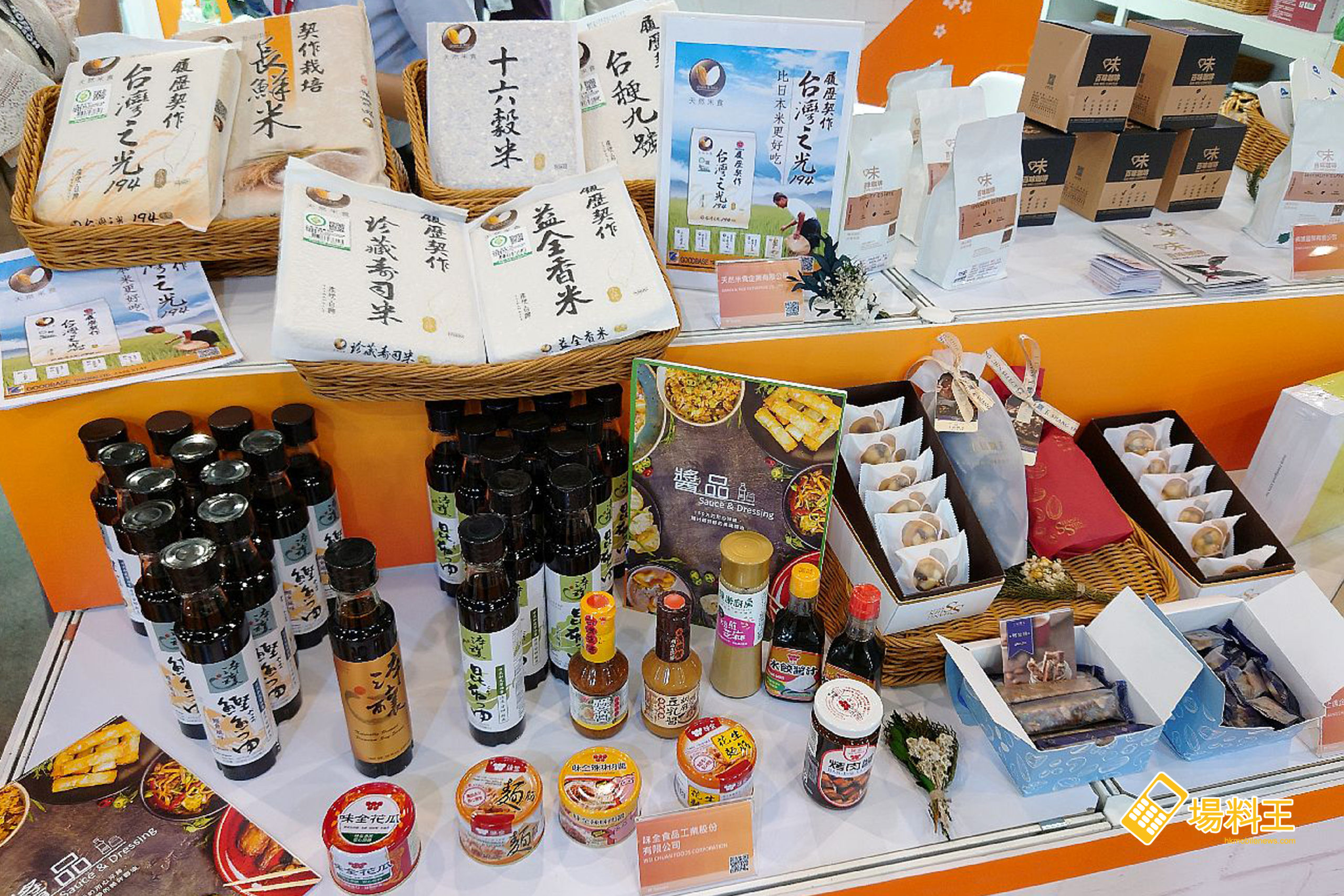 台灣的農產品一向質優,除了天然米食帶來多款香米 (下圖左上) 外,味全食品的多款醬油、罐裝伴菜 (下圖左下) 也同樣吸引。
