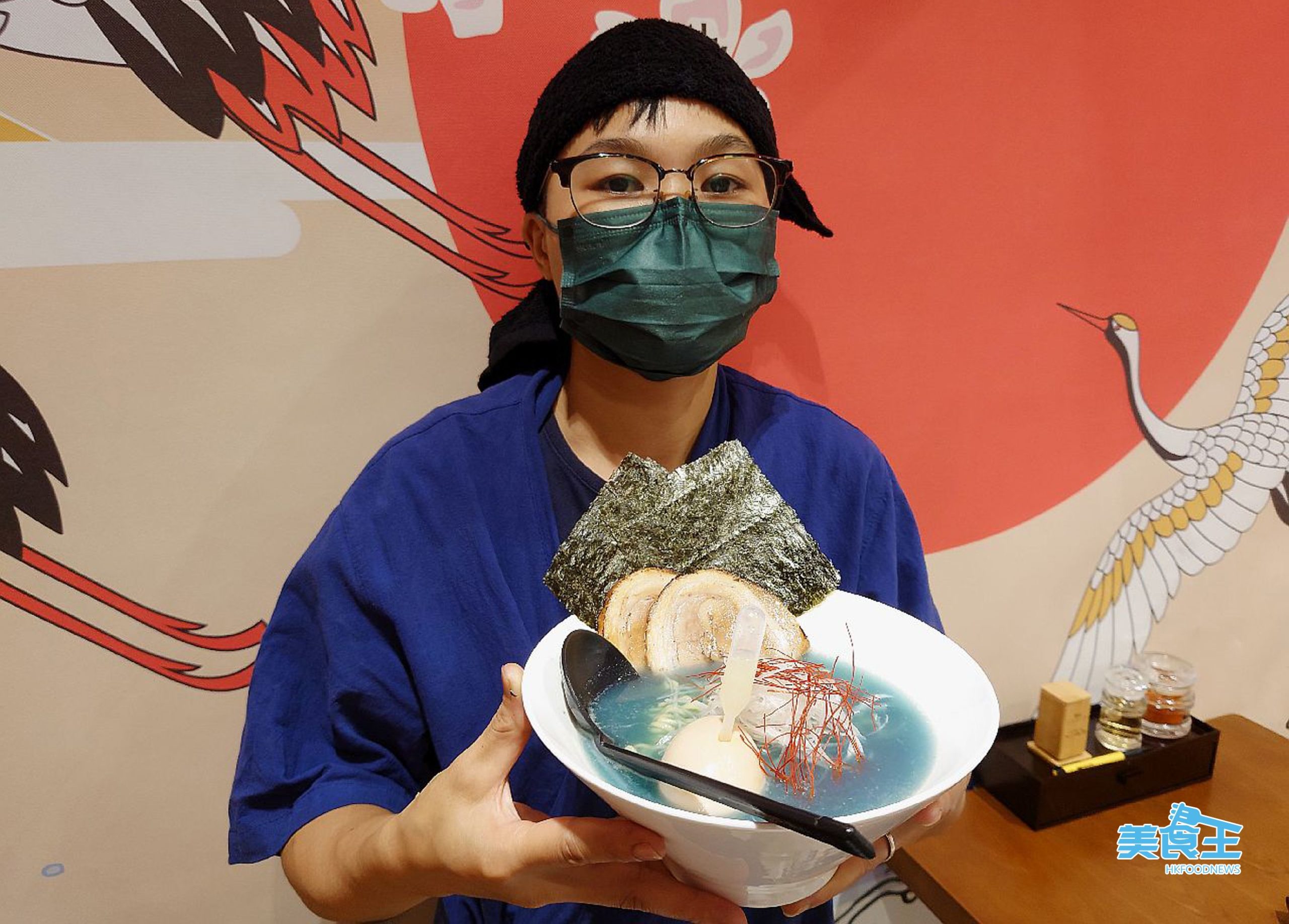 店內除了基本的白、黑、赤、橙 4 種顏色湯底的拉麵外,Maki 還會推出「季節限定」的拉麵款式,供應期沒特別限制,但今次這款「清雞湯拉麵」($85/本文主相) 暫定應供應至 10 月底至 11 月左右。這麵其實是 Maki 把日本的拉麵款式移師來港,其湯底為木耳、昆布及雞湯,藍色湯底 (下圖左) 在原裝版本是採用藍藻植物製成,但在香港沒這食材而改為同是天然食材且具抗氧功效的蝶豆花,當中配上一小支檸檬汁,除可帶出雞湯的鮮甜味外,更令湯底顏色瞬間化為夢幻的紫色 (下圖右),直是多了一重視覺上的享受!