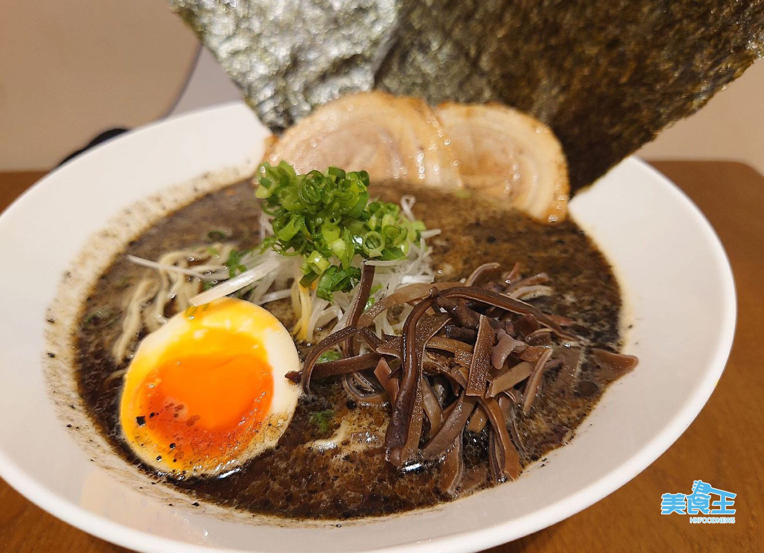店內的「黑湯」是採用豬骨湯配白直麵、湯底添加自家製黑蒜油提香的「黑蒜油豚骨拉麵」($70),蒜香濃郁而不辣,加上叉燒經炙燒後誘發的焦香,令香味的層次更凸顯出來。