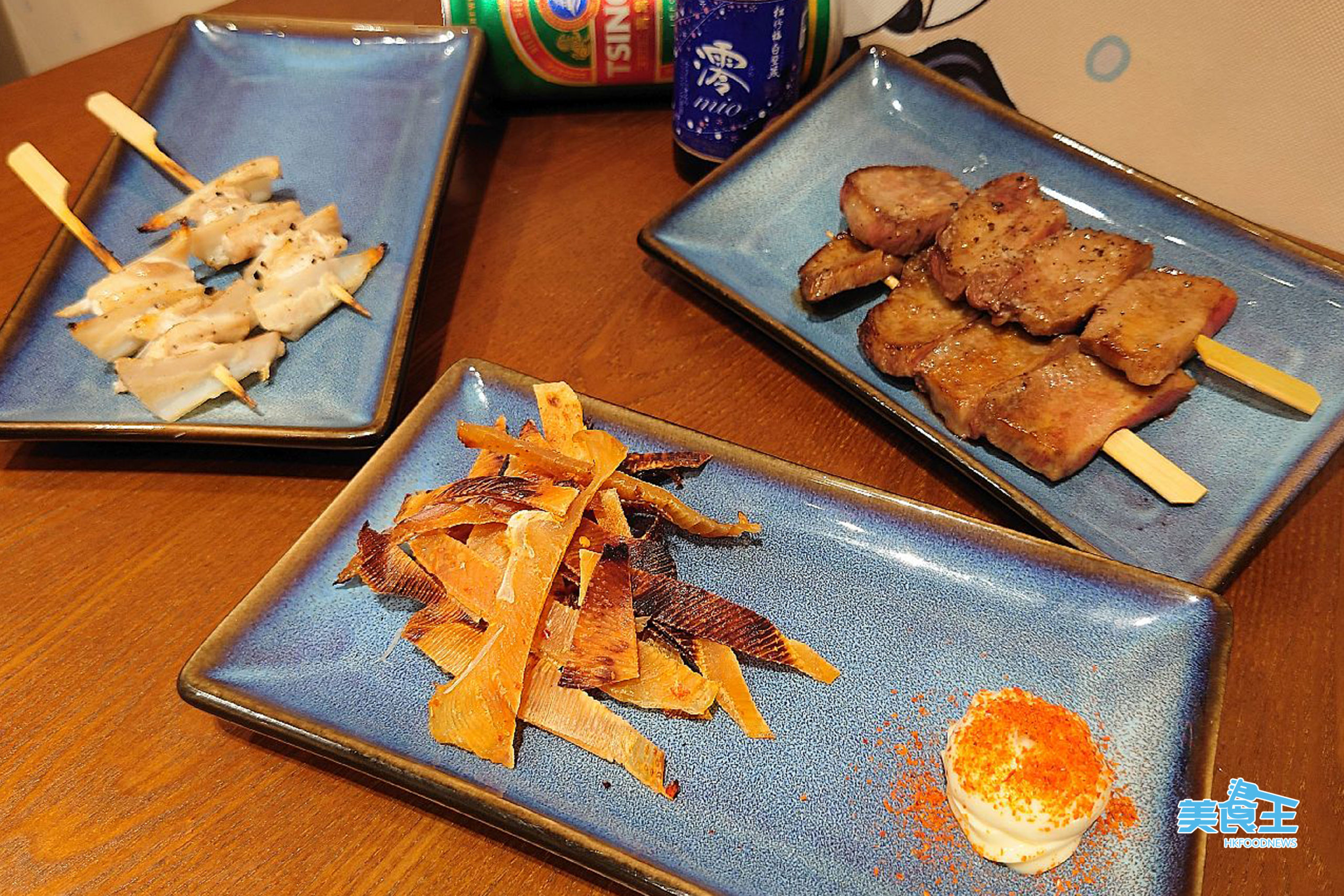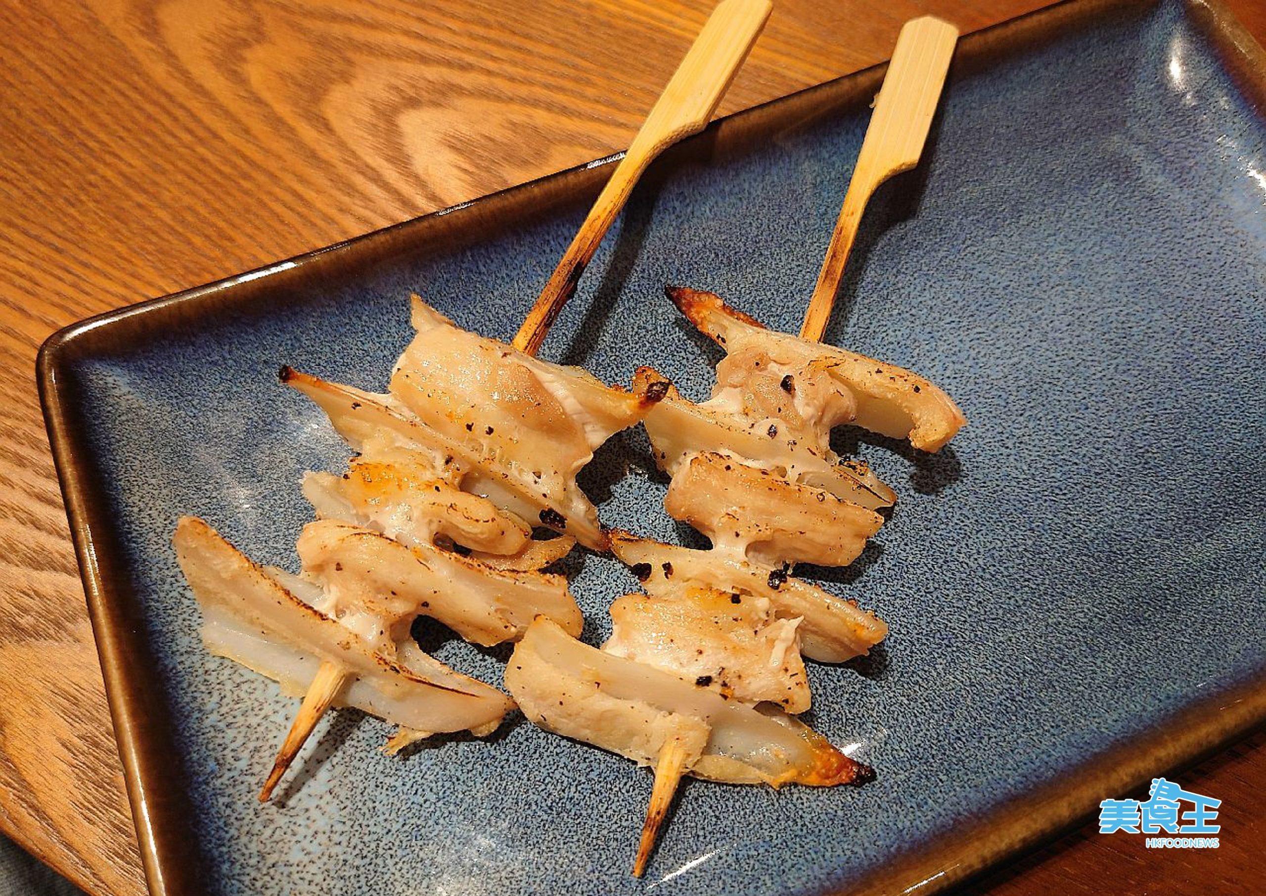 在主打拉麵之餘,店內也提供近廿款串燒小食,最值得推介的是較少吃到的「魔鬼燒魚翅乾」($58/份/下圖中),採用來自日本供應商的魔鬼魚魚鰭,外層酥脆飄香內在則煙韌柔軟,口感比一般的雞泡魚乾更好;而「厚燒牛舌」($28/串/下圖右) 香口肉厚但入口軟腍,實是佐酒佳品。