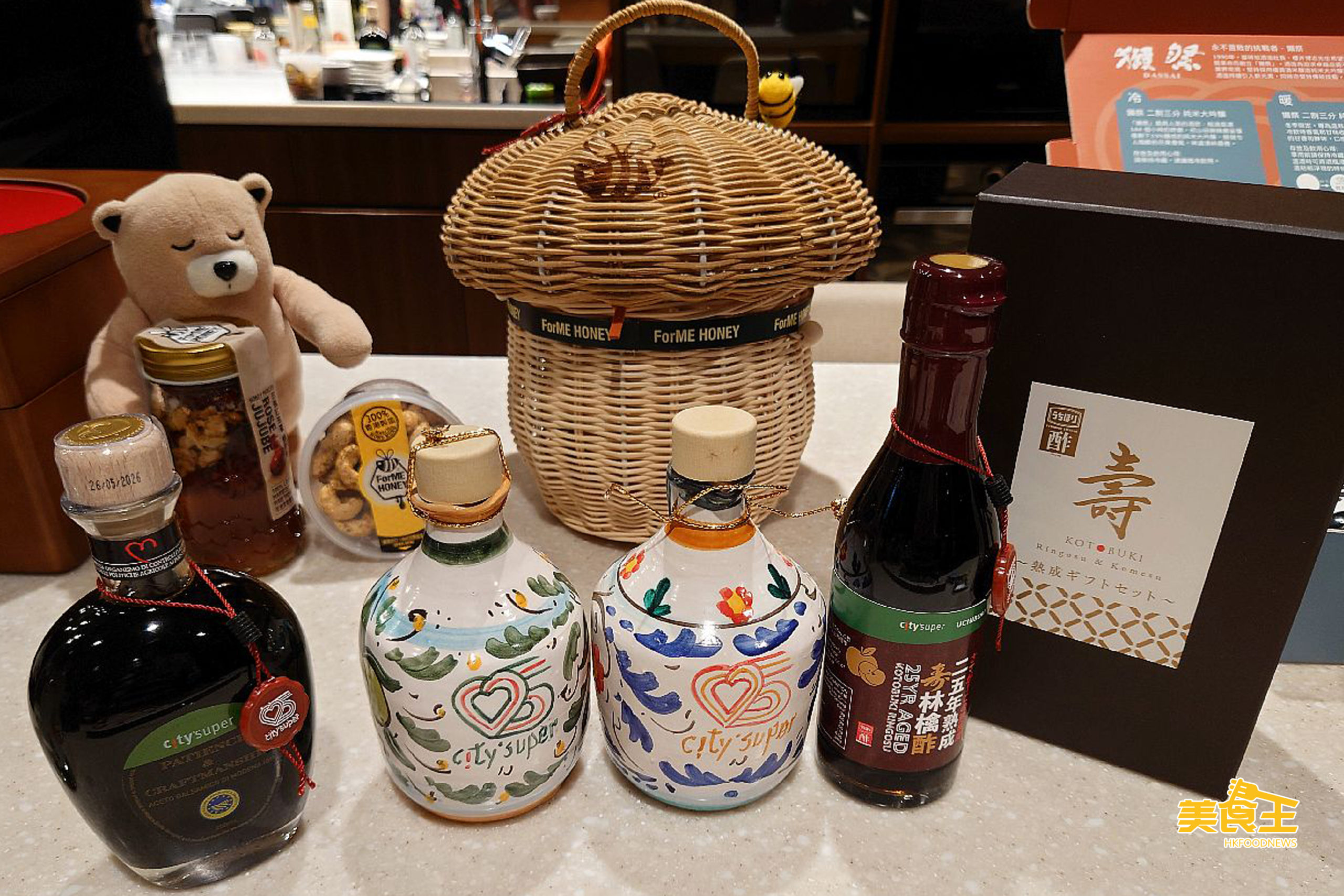另外,獨家產品有由意大利西西里島陶瓷工匠大師設計及手繪 city’super 25 周年標誌於陶瓷瓶身的 Regno Degli Ulivi 特級初榨橄欖油 ($295/下圖中),讓大家除可品嘗產品的滋味外,亦可細味及欣賞當中的手藝;採用百年配方於橡木桶釀造的 city’super 金’摩德納黑醋 PGI ($150/下圖左);來自日本的頂級果醋 city’super x 内堀醸造 25 年熟成壽林檎酢 ($250/下圖右) 等,加上本地品牌 ForME HONEY 推出的 city’super 25 周年限定蜂蜜套裝 ($988/下圖後),都是不能錯過的周年產品。