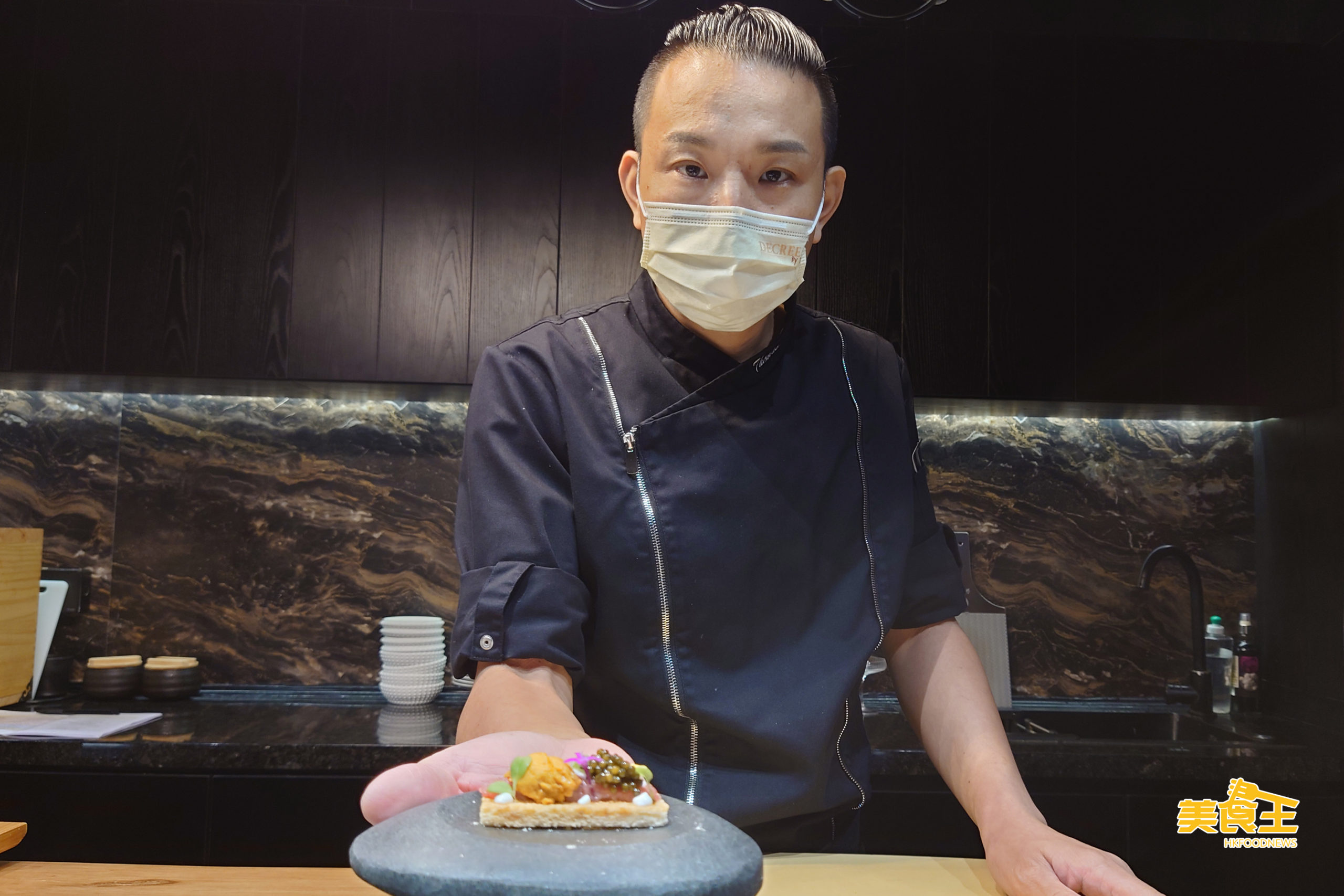 有別於現時一般主打 Omakase 的日式料理店,Decree by T 由入行廿多年、曾任職五星級酒店法國餐廳主廚及於米芝蓮餐廳擔任管理及菜單設計工作的 Thomas 作主廚,故常推陳出新,令為每款菜式添加新派氣息,把廚師發辦體驗提昇至嶄新層次,而店名「Decree by T」當然亦由此而來,而當中的「T」當然是指 Thomas。餐廳內,由前菜、主菜及甜品都糅合多個國家時令高質食材,並配以不同烹調煮法,創作出高質新派廚師發辦;而據 Thomas 表示,為了新店已研製出逾百款的 Omakase 菜式,必可令大家帶來新鮮感。