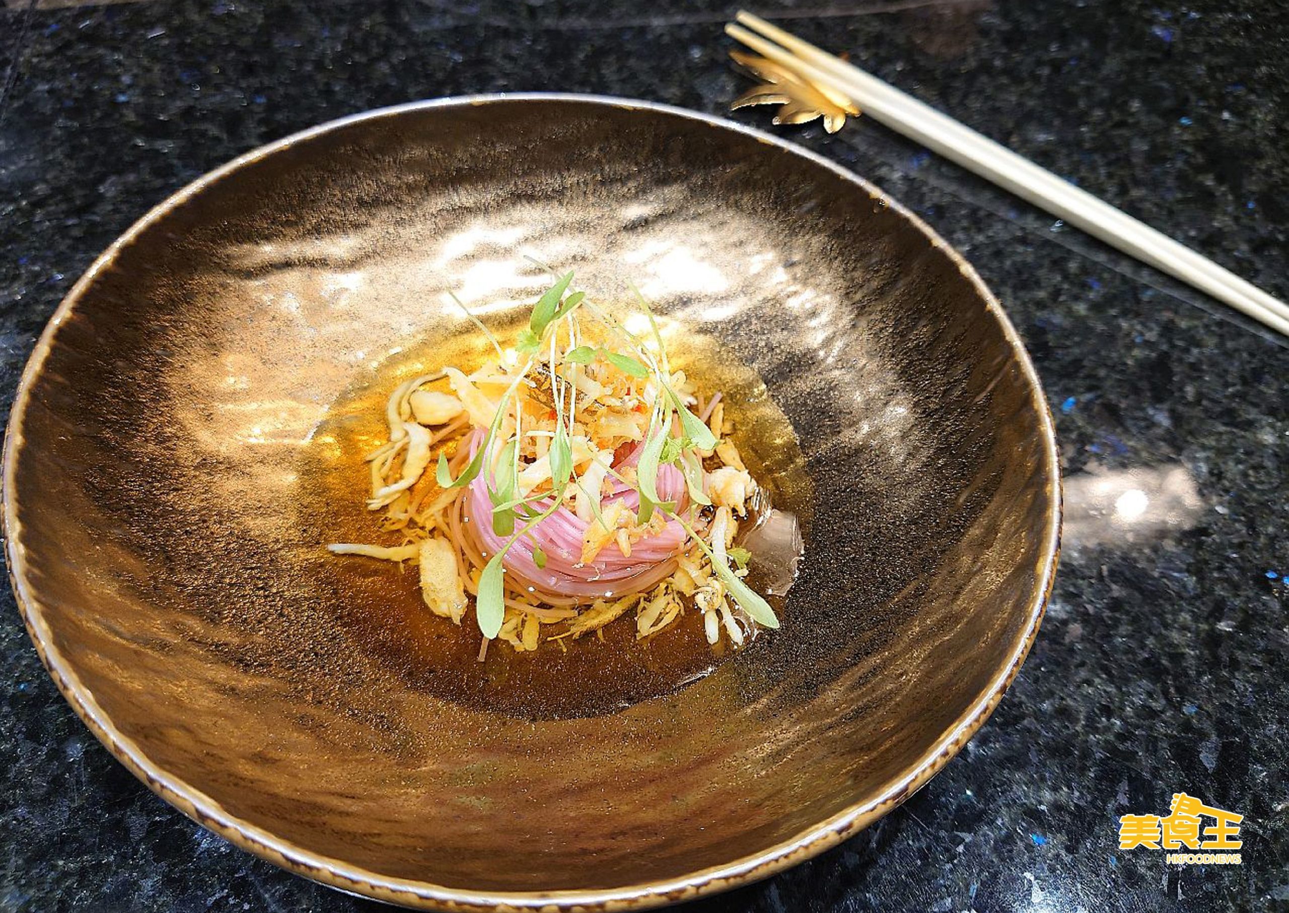 大廚利用大閘蟹的蟹殼用來熬湯,配上梅子素麵及蟹肉做成「蟹肉麵」。