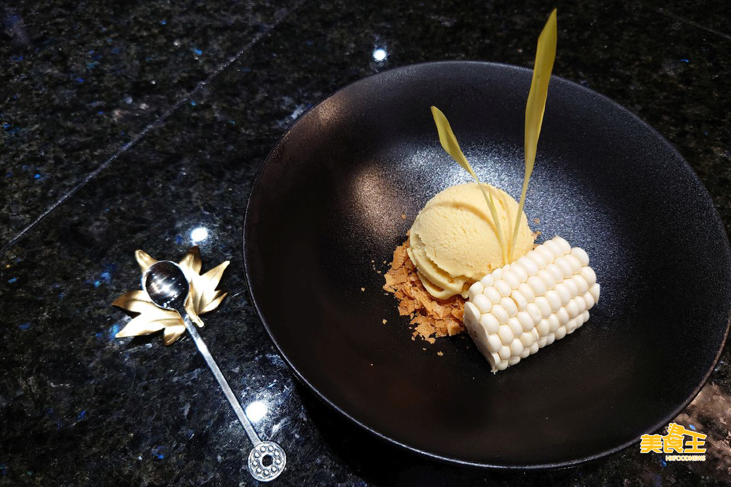 別以為 Thomas 的創意僅限於主食之上,原來連店內的甜品也由他來創製,並將不定期轉換新菜式。如首次推出的是「自家製粟米意大利雪糕」,Thomas 除了特別因此而購入製雪糕機外,因應味道而混合使用日本、美國兩地的粟米,再於底部先放有香脆的粟米片,伴以北海道白粟米及作裝飾的可食用白粟米苗,令整個甜品的視覺、整體味道及口感都照顧周到,確是非一舨的貼心,在對食物的追求以外,對食客的體貼更值得一讚。