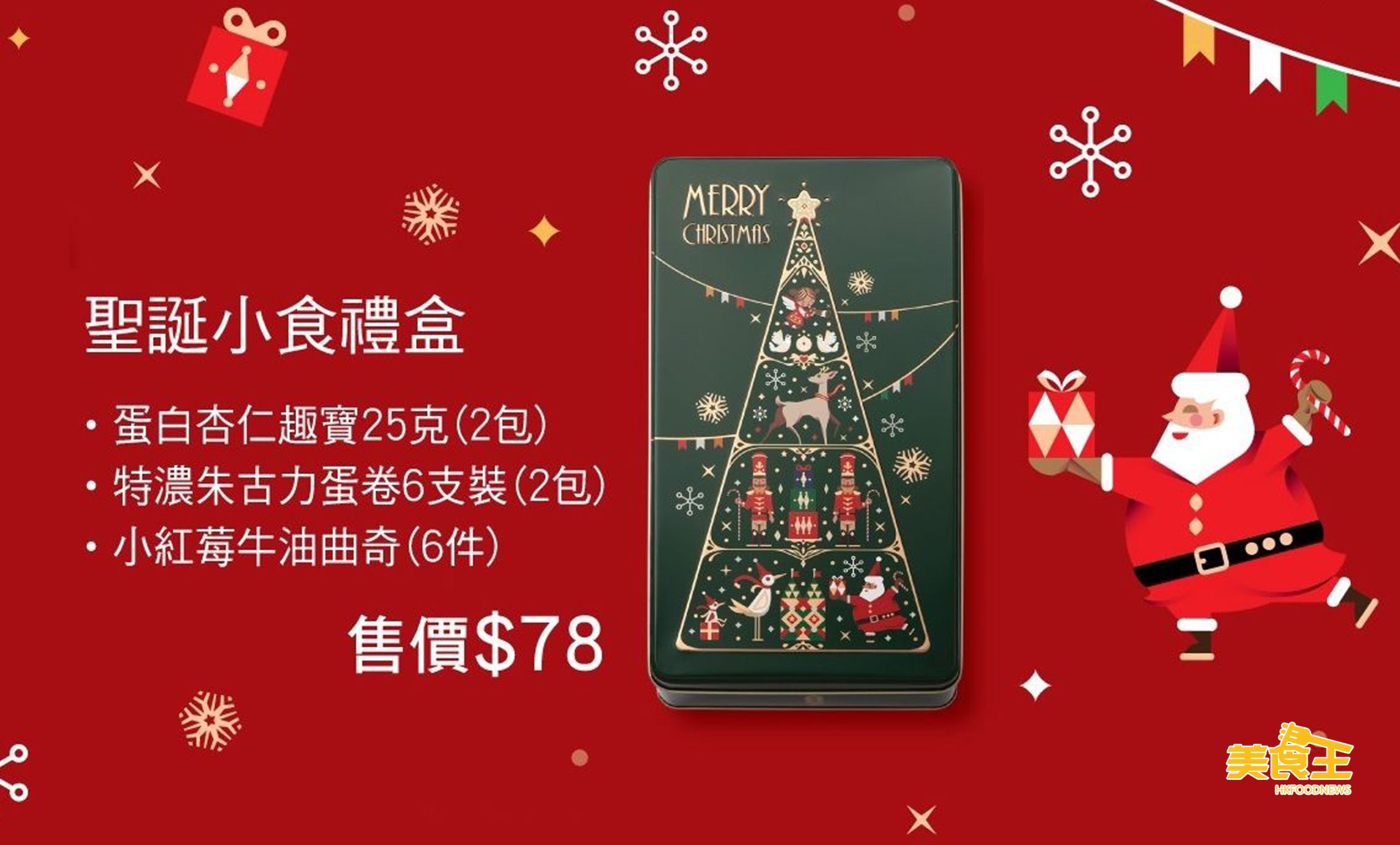 奇華餅家於即日至 12 月 25 日期間在奇華餅家全線分店 (香港國際機場分店除外) 除了有一系列「Line Friends With Kee Wah Bakery」商品外,更特意為大家準備另一款以經典聖誕角色作為靈感的「聖誕小食禮盒」($78),放著香氣滿溢的「蛋白杏仁趣寶」、濃郁中滲出蛋香的「特濃朱古力蛋卷」及酸甜紅莓配上淡淡牛油香味的「小紅莓牛油曲奇」,味道誘人,確是送禮自吃皆適宜。