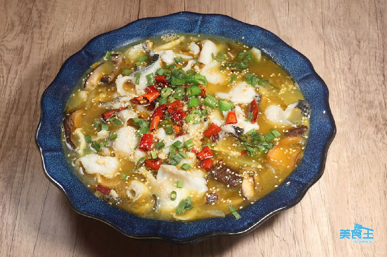 「金湯酸菜魚」($188) 採用特調酸菜魚醬,包括泡薑、小米椒,繼而加入南瓜、黃燈籠椒令其色澤金黃彷如金湯,更不計成本加入冬菇、秀珍菇及雞髀菇等雜菌,以增添鮮香風味。待湯熬製 6 小時後,再放入特選新鮮生魚片,故魚肉嫩滑外,更可拌以薯粉及湯同吃,頓感纖細麻香的之味。